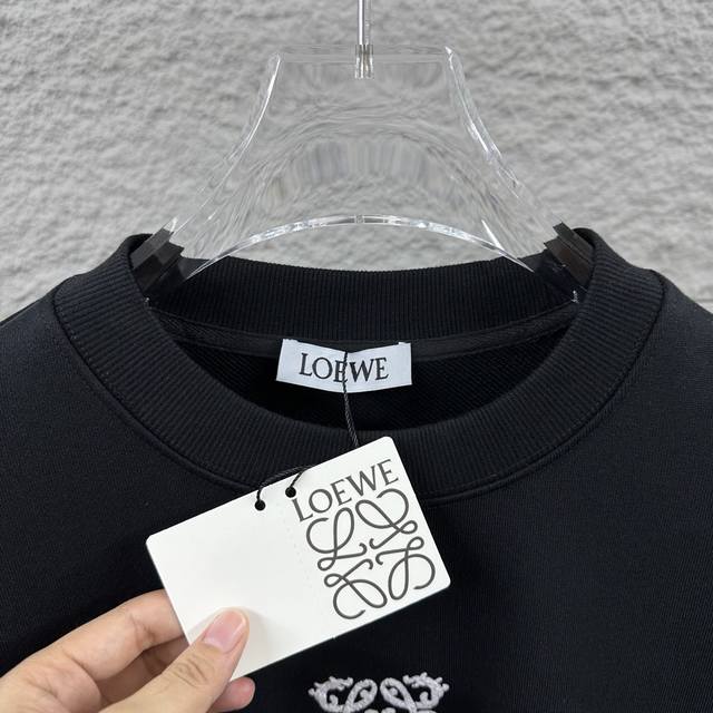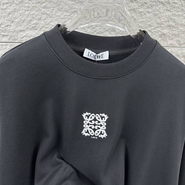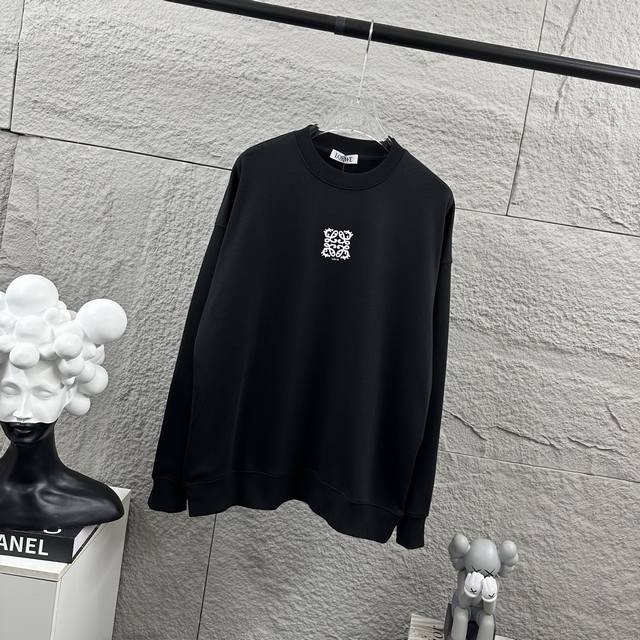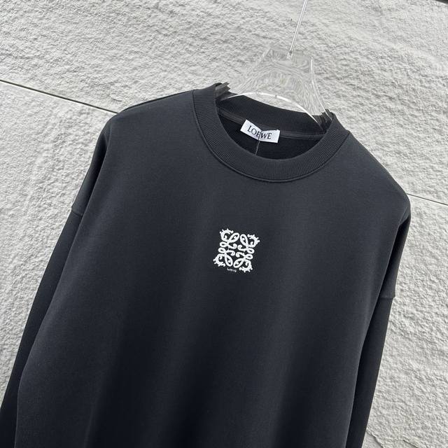 Loew* 2025 Early Autumn/Winter Classic Simple Personalized Letter Totem Embroidered Logo Long-Sleeve Crew Neck Sweatshirt, Unisex, Colors: Black, White, Sizes: S (90-130 lbs), M (120-150 lbs), L (140-165 lbs), XL (160-180 lbs), XXL (180-210 lbs)