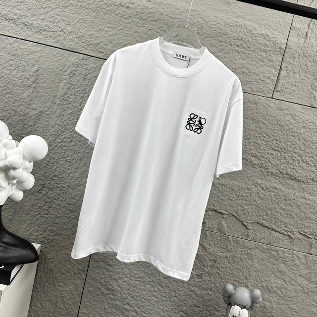 Loew* 2025 Spring/Summer Classic Simple Personalized Letter Totem 3D Embroidered Logo Custom Double Yarn Plain Cotton Short-Sleeve T-Shirt Unisex Colors: Black, White Sizes: S 90-130 lbs M 120-150 lbs L 140-165 lbs XL 160-180 lbs XXL 180-210 lbs