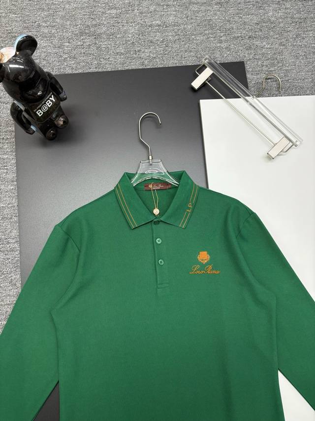 Loro Piana New Embroidered Long-Sleeve Polo Shirt. Made with 250g pure cotton pique fabric, custom-dyed in the same vat, it feels incredibly comfortable and smooth. The cut is crisp and stylish. Produced by a top-tier brand OEM factory, featuring imported Behringer embroidery machine for rich and textured embroidery. The ribbed cuffs and collar are made with imported yarn, ensuring long-lasting shape retention. A fashionable and unique autumn/winter style, super versatile and attractive. Suitable for both men and women, a must-have. Colors: Black, White, Royal Blue, Gray, Green. Sizes: M-3XL.