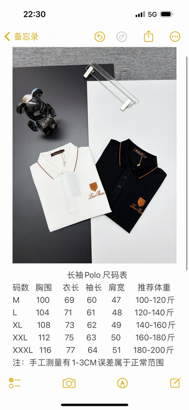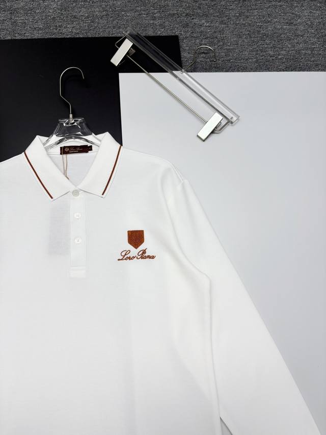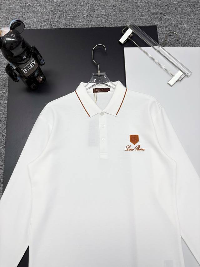 Loro Piana New Embroidered Long-Sleeve Polo Shirt. Made with 250g pure cotton pique fabric, custom-dyed in the same vat, it feels incredibly comfortable and smooth. The cut is crisp and stylish. Produced by a top-tier brand's OEM factory, featuring imported Behringer embroidery machine for rich and textured embroidery. The ribbed cuffs and collar are made with imported yarn, ensuring long-lasting shape retention. A fashionable and unique spring/summer style, super versatile and attractive. Suitable for both men and women, a must-have. Colors: Black, White. Sizes: M-3XL.
