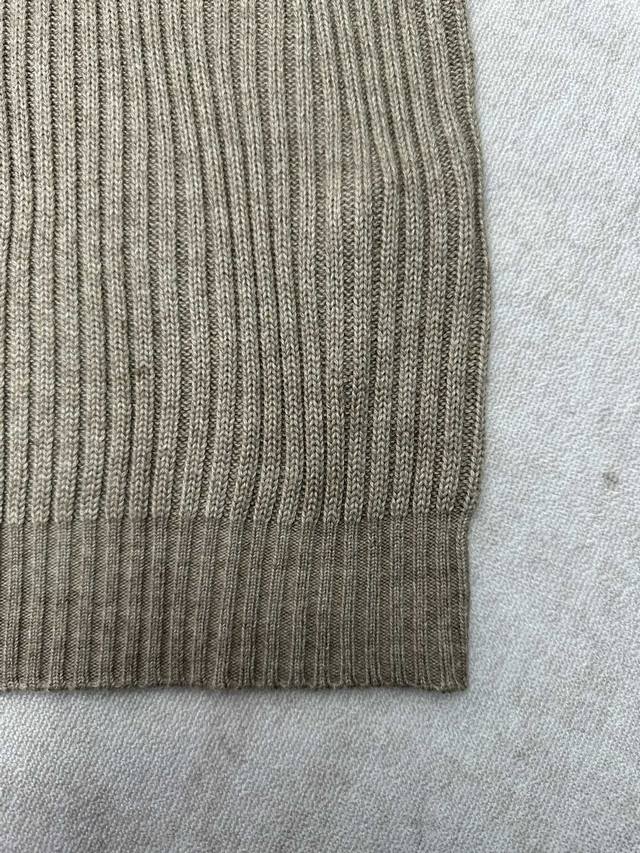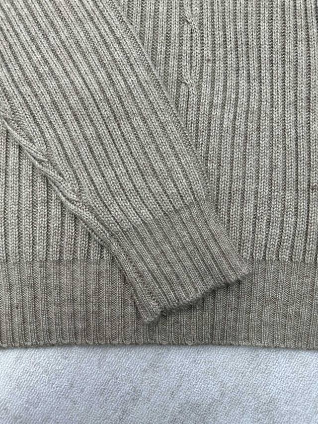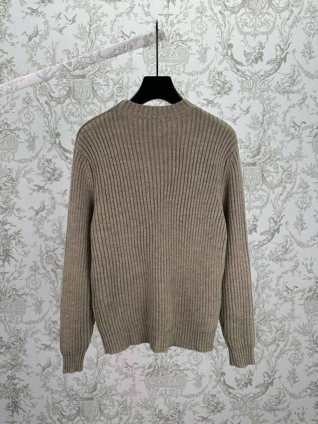 Lp25Ss New Plane Tree Men's Crew Neck Sweater. This Plane Tree crew neck sweater features an elegant textured cable knit pattern at the center. Made from exceptionally soft young cashmere, sourced from the delicate undercoat of young Hircus lambs and dyed with plant-based pigments, it boasts a unique blended color effect. Ribbed trim accents the sophisticated silhouette. Sizes: S, M, X, L.