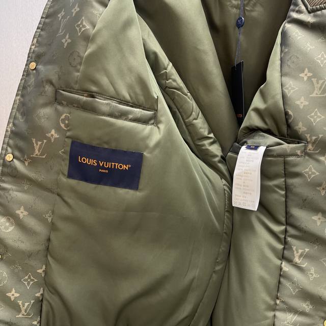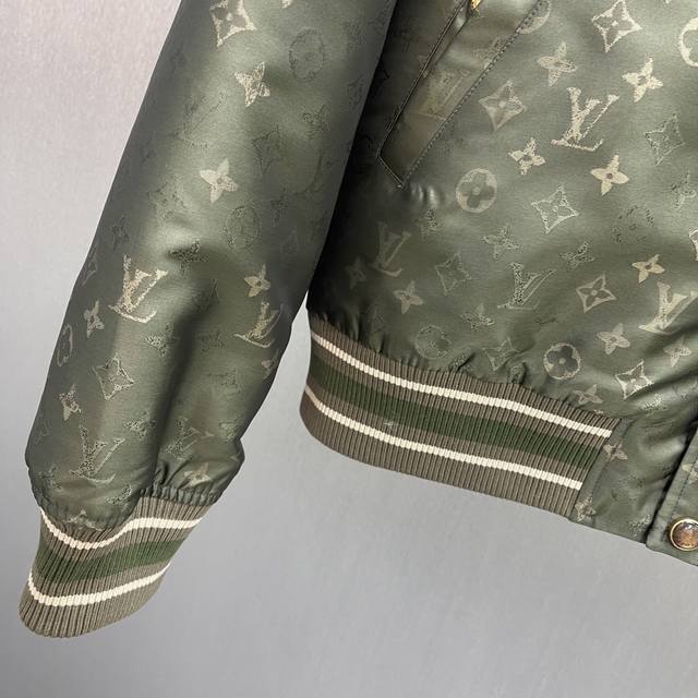 Lu Camouflage Monogram Bomber Jacket Ddd Size: S-XL Ddd This sleek padded bomber jacket features a silky technical fabric and a Monogram Surplus jacquard pattern. The mottled tones on a subdued base create a camouflage-like visual effect. Quartz-textured snap buttons add a touch of sophistication, while a leather logo patch on the back refines this casual silhouette. DDD