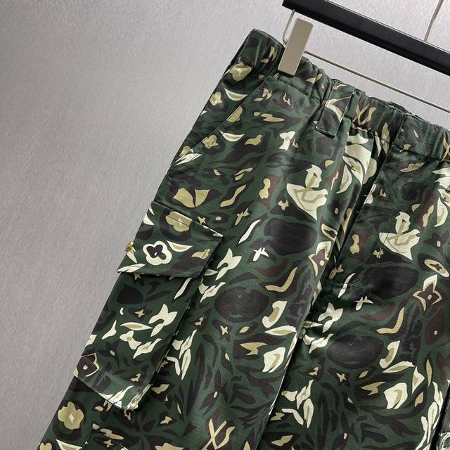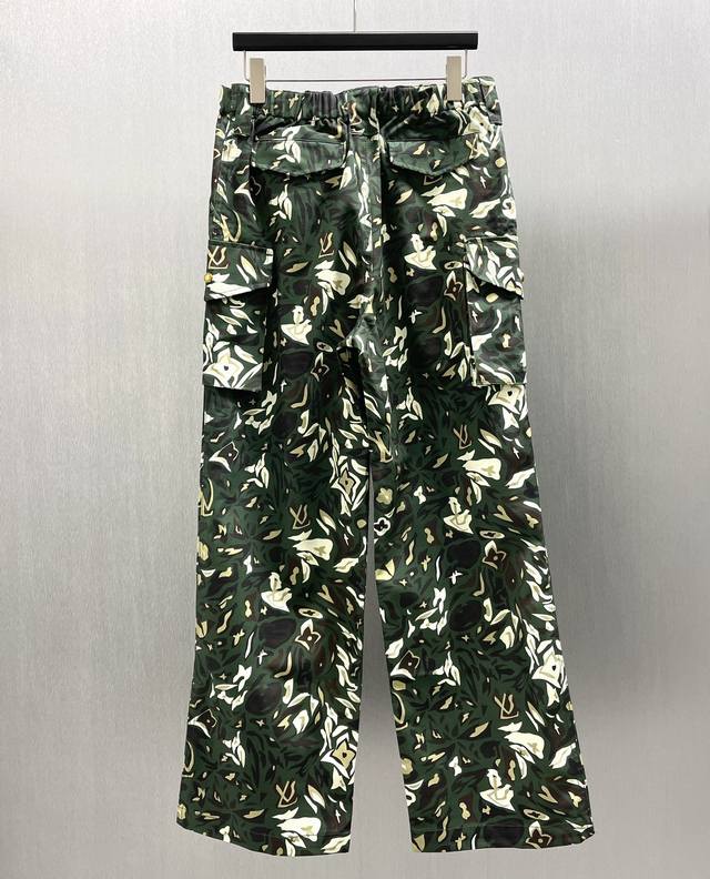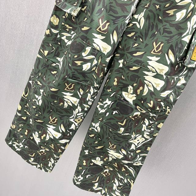 Lu Camouflage Pocket Cargo Pants Ddd Size: S-XL Ddd These urban cargo pants subtly incorporate the Lcamo pattern into the Monogram logo, showcasing the unique creativity of pharrell Williams and Nigo in their Fall/Winter 2025 collection. Features cargo pockets, a double-layered construction at the knees, and a Marque L.Vuitton Deposee patch adorning the left pocket. DDD