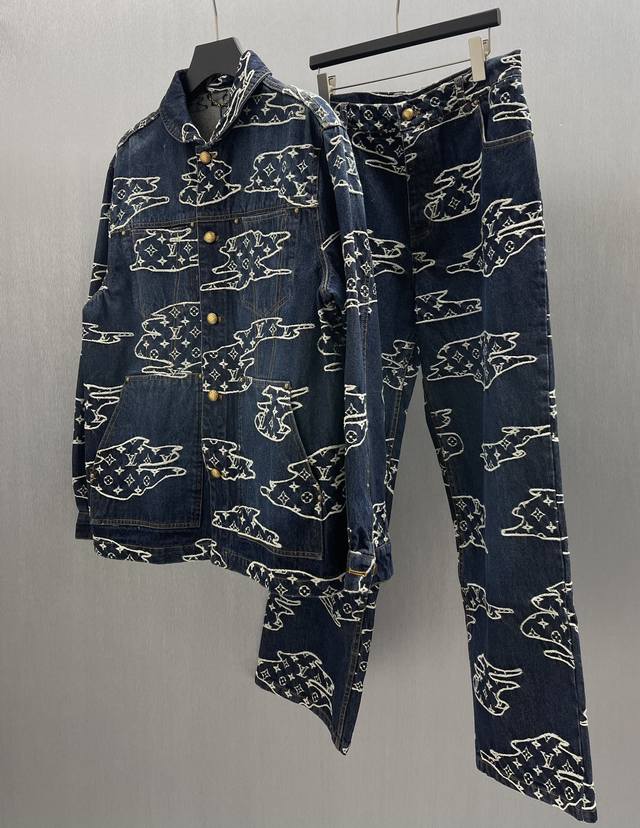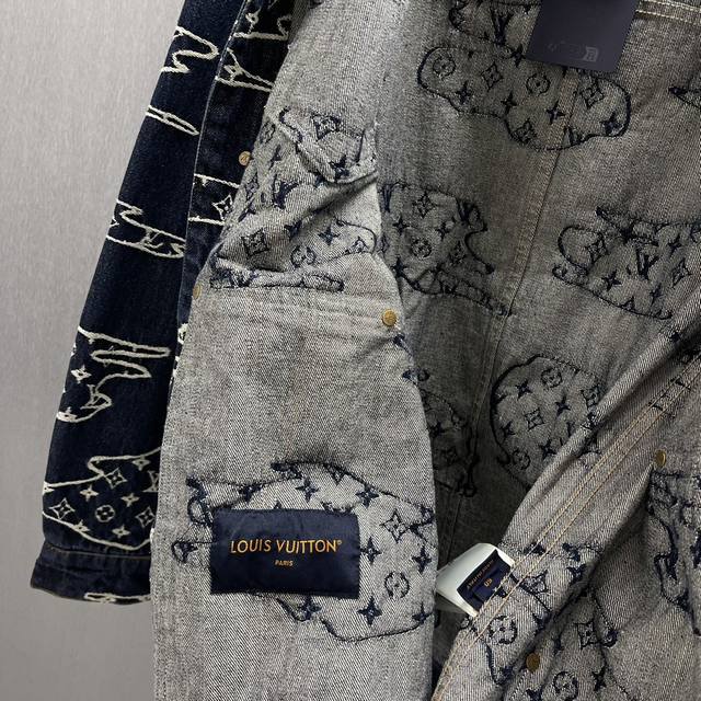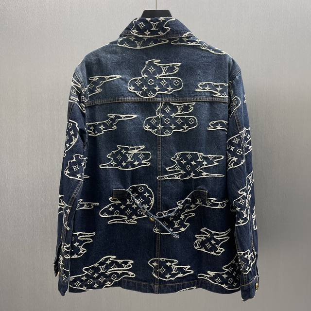 Lu Cloud Denim Shirt Jacket Ddd Size: S-XL Ddd This workwear belted jacket features a lightweight washed denim fabric with an elegant curved collar. The Monogram Clouds jacquard patchwork pays homage to traditional Japanese patchwork techniques, showcasing the creative ingenuity that pharrellwilliams and Nigo have infused into their Fall/Winter 2025 collections. Pair it with matching trousers for a runway look. DDD