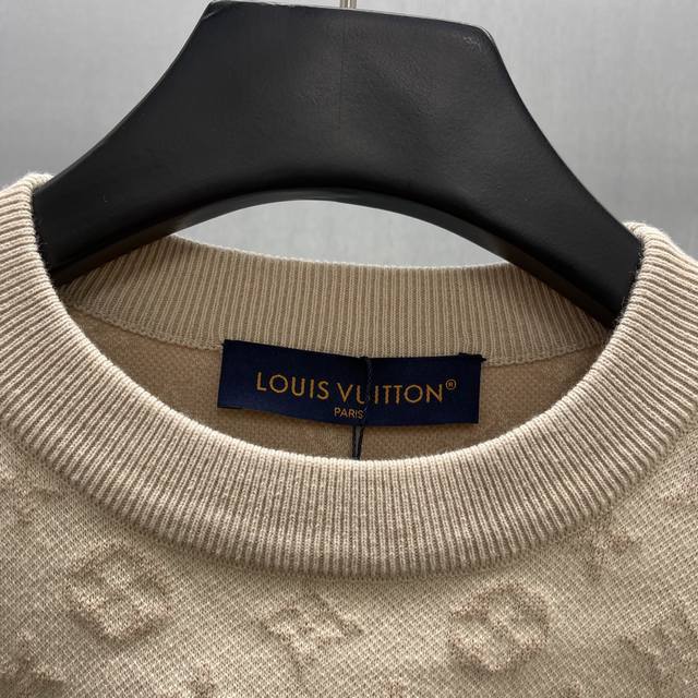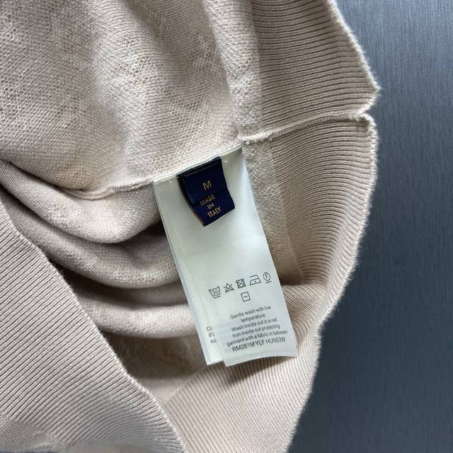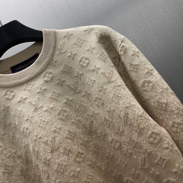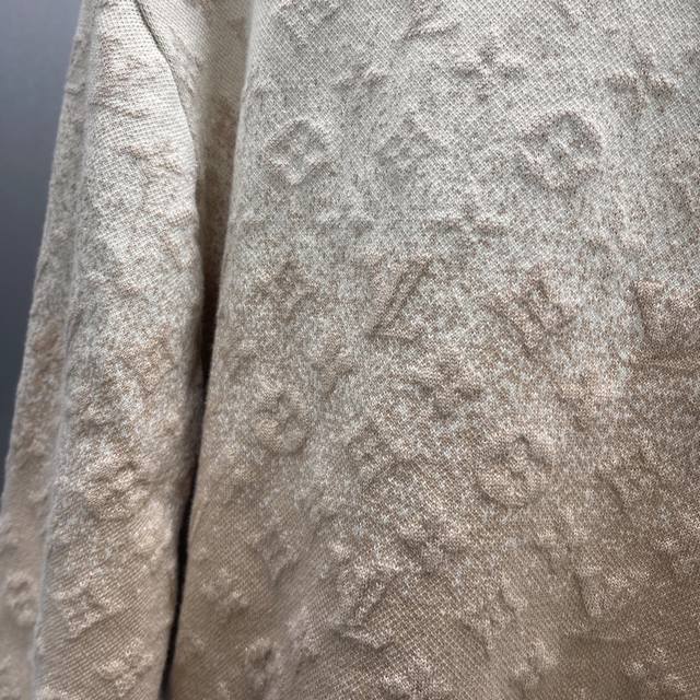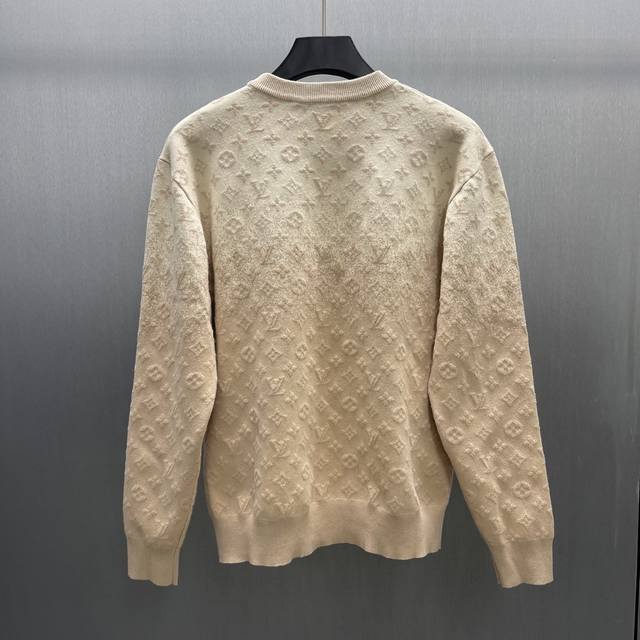Lu Embossed Gradient Bleached Knit Jacquard Crew Neck Top Ddd Size: S-XL Ddd This fine cotton knit crew neck top features a delicate sun-bleached effect, inspired by the vibrant Indian sun and traditional garment dyeing techniques. The entire piece incorporates a gradient color scheme with a faded Monogram jacquard pattern, creating a one-day illusion look and adding a light geometric accent to everyday outfits. DDD