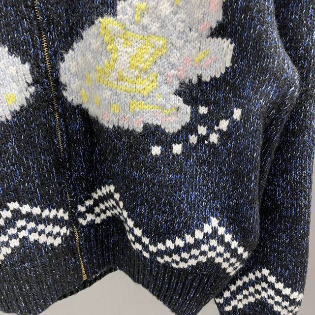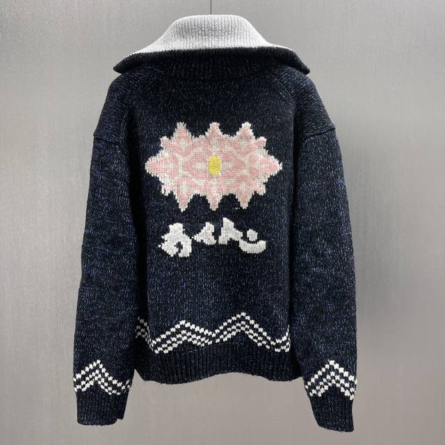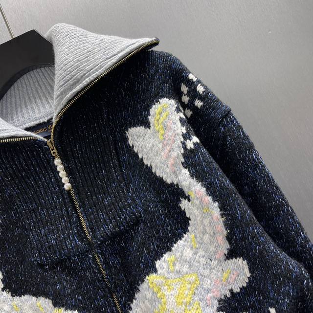 Lu Pisces Zipper Knit Waist-cinching Jacket Ddd Size: S-XL Ddd This waist-cinching jacket focuses on the creative vision shared by pharrell Williams and Nigo for Fall/Winter 2025. A koi fish adorned with a heart logo swims on the front, while cherry blossoms and Japanese characters on the back reveal Nigo's cultural roots. The sophisticated pattern is presented in an intarsia and embroidery technique on a cotton-wool blend knit, with a delicate, handcrafted texture. A beaded zipper pull adds an elegant touch to the comfortable silhouette. DDD