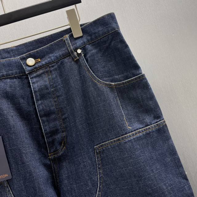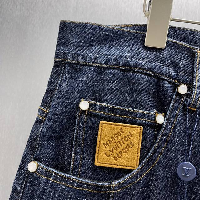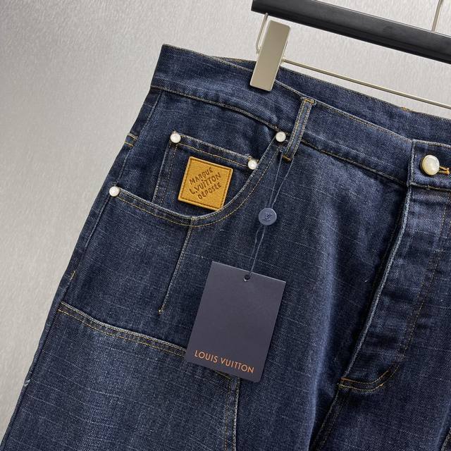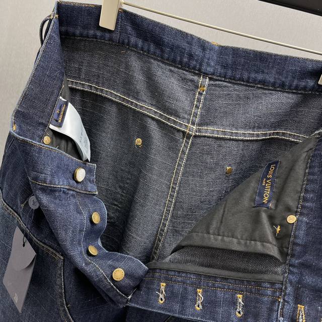 Lu Washed Denim Jeans Ddd Size: S-XL Ddd These jeans are from the Fall/Winter 2025 runway show, featuring washed denim with an Epi grain leather texture. Suede is adorned with patches and a Mini Damier label on the pockets and back, while pearlescent buttons and rivets add a touch of sophistication DDD