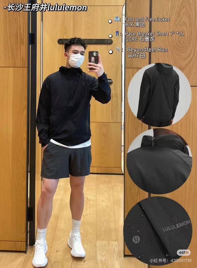 Lululemon Fast And Free series solid color windproof elastic zipper hooded sport