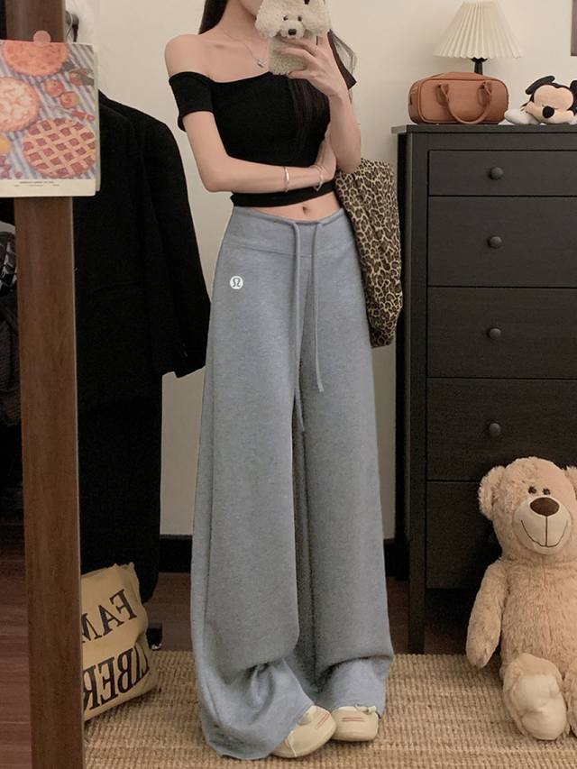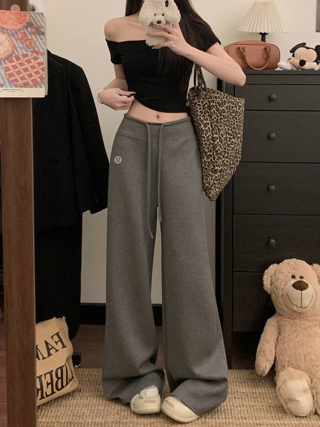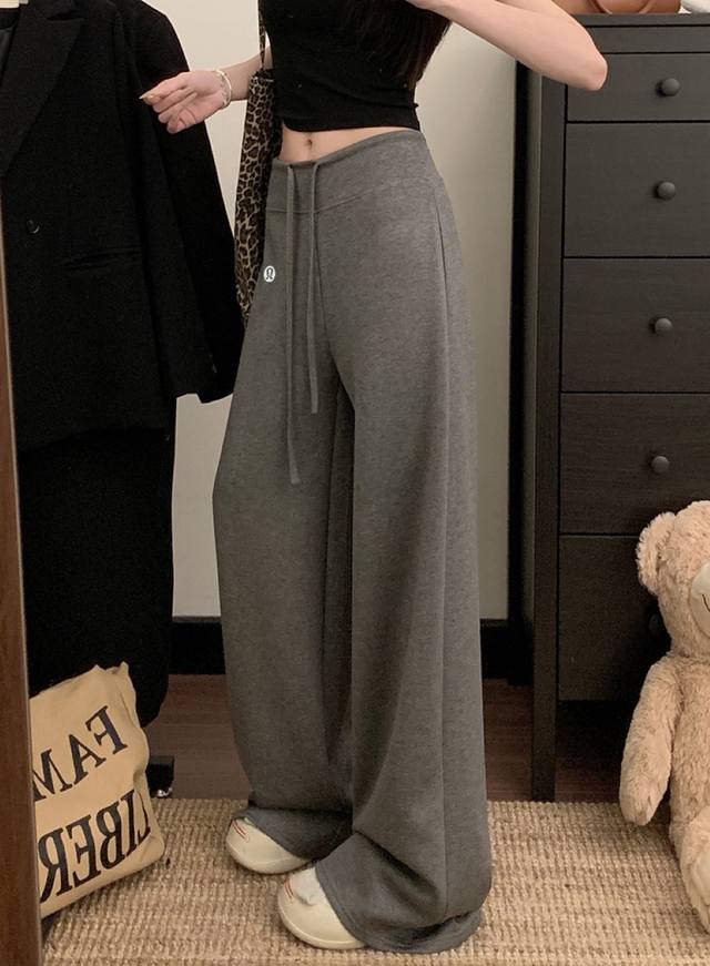 wide-leg design easily cover up leg fat, hiding fake wide hips and thick legs, and instantly creating the illusion of straight and long legs. The drawstring ties + elastic waist design make it easy to put on and take off, and the waistline can be adjusted freely. It is not picky about body shape and can be perfectly adapted to all body shapes. The overall design is loose and simple, and the upper body has a lazy and casual atmosphere, which is very casual. Whether it is full of energy during exercise or fashionable and stylish for daily outings, this pair of pants can be easily controlled. Paired with a simple T-shirt, a cropped top or a sports vest, you can instantly become a street fashionista~ Gray and dark gray