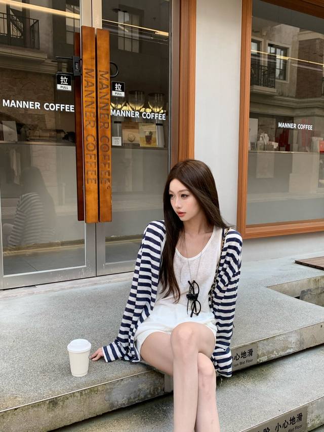 Japanese Stripe Elements: The classic Japanese stripe design is simple yet stylish, adding a fresh and gentle touch to the cardigan. The stripes are perfectly spaced and not overly conspicuous, yet they subtly flatter your figure, creating a visually slimming effect.