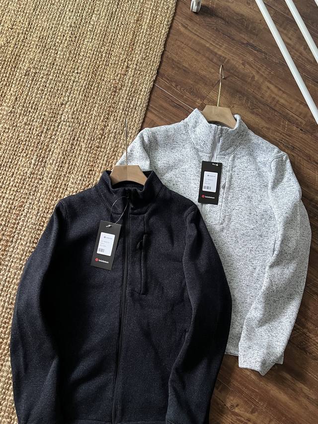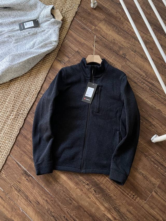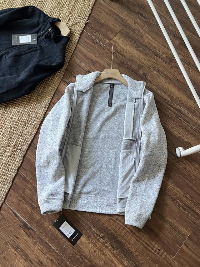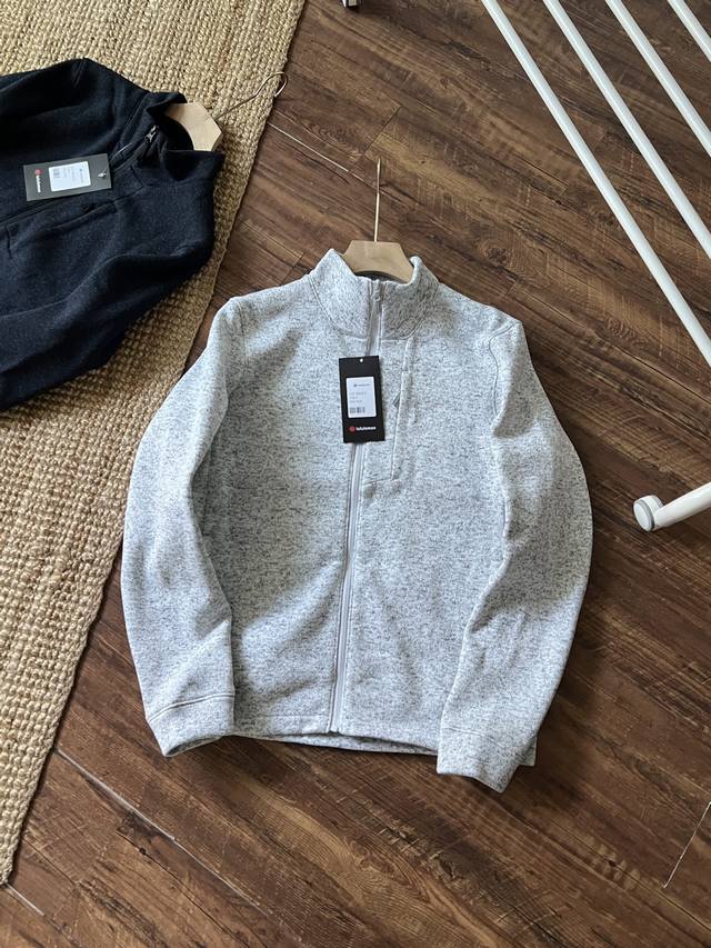 Lululemon Sojourn Men's Fleece-Lined Knit Jacket, 1000+ online, classic style, incredibly soft and comfortable, Lululemon's custom knit fabric, soft, elastic, breathable, and skin-friendly. Fleece lining provides warmth and insulation in autumn and winter while maintaining breathability. A great outdoor layer for autumn and winter, can be worn alone or as a base layer. The small stand-up collar adds a sporty and youthful touch, and the zippered chest pocket completes the outdoor casual look. A small fabric label adorns the back hem. Unisex, a basic commuter style, highly recommended! Colors: Black, Gray, White Sizes: M-3XL