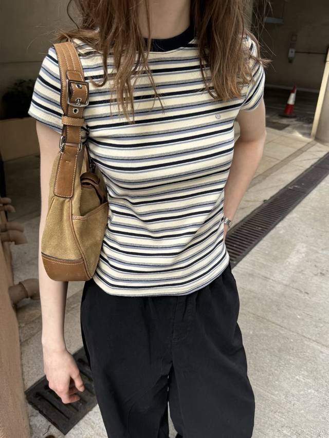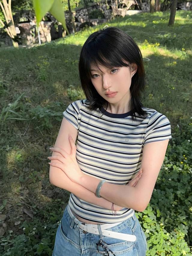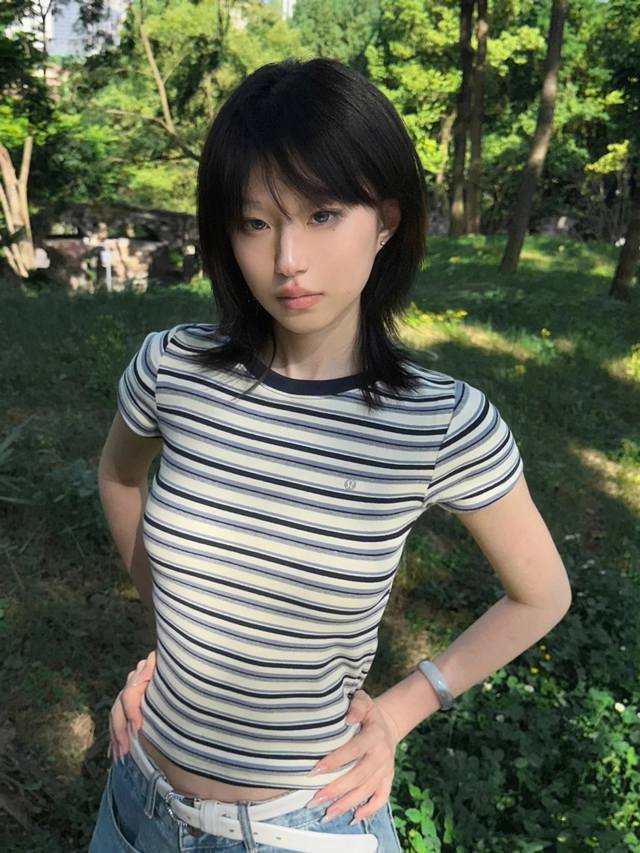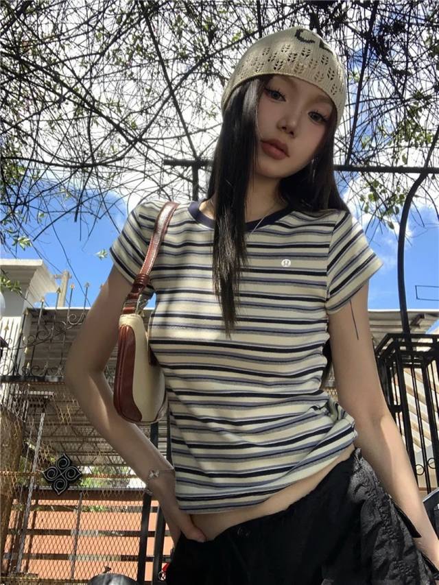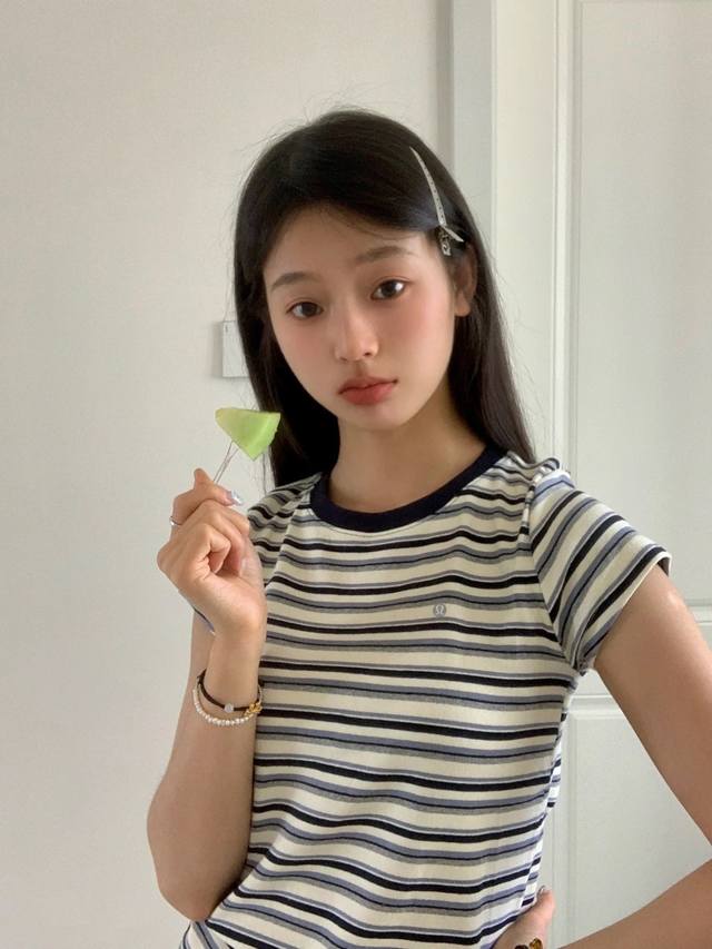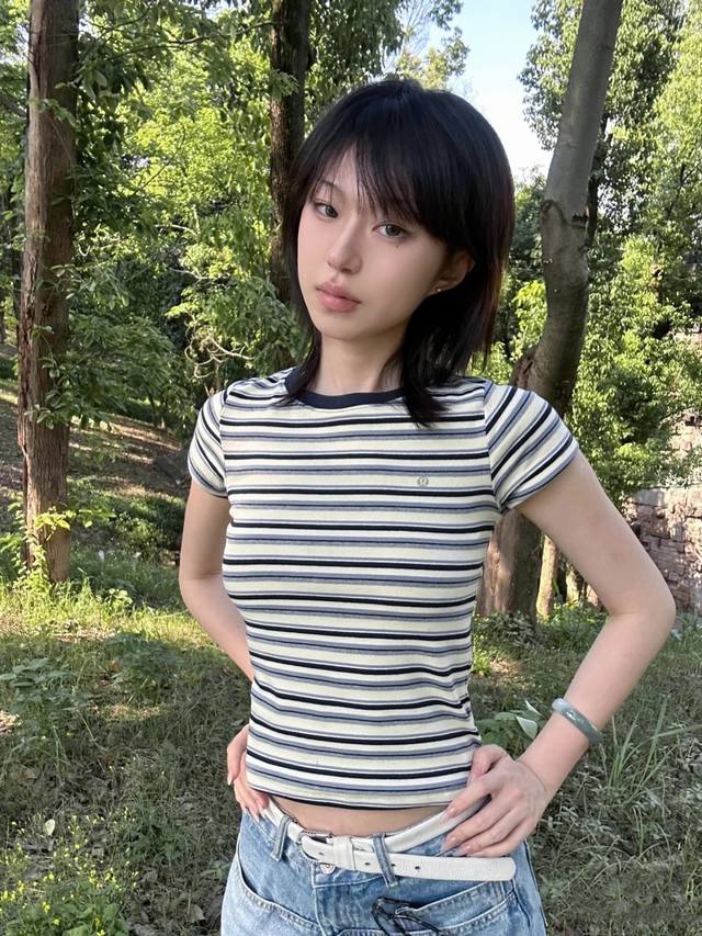 My dears, how can you not have a versatile and eye-catching striped T-shirt in your summer wardrobe? This striped round-neck straight-shoulder short-sleeved T-shirt from Lululemon will definitely become your favorite in summer