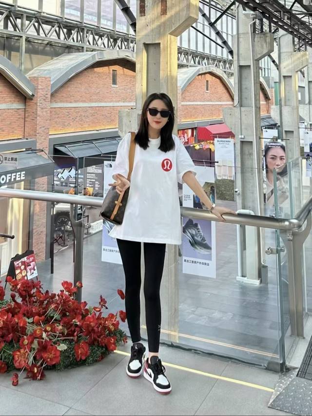 Lululemon25 New couple short-sleeved T-shirt with big logo on the back! Loose fi
