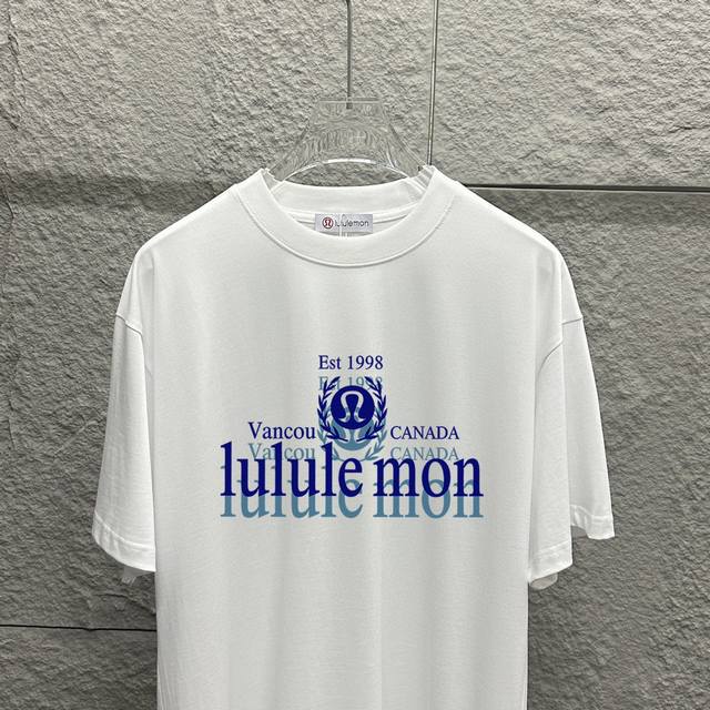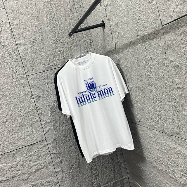 Lulu*Lemon*Lulu 2025 spring and summer new short-sleeved T-shirt classic overlapping letter printing custom double yarn plain cotton 300 fabric unisex same style
