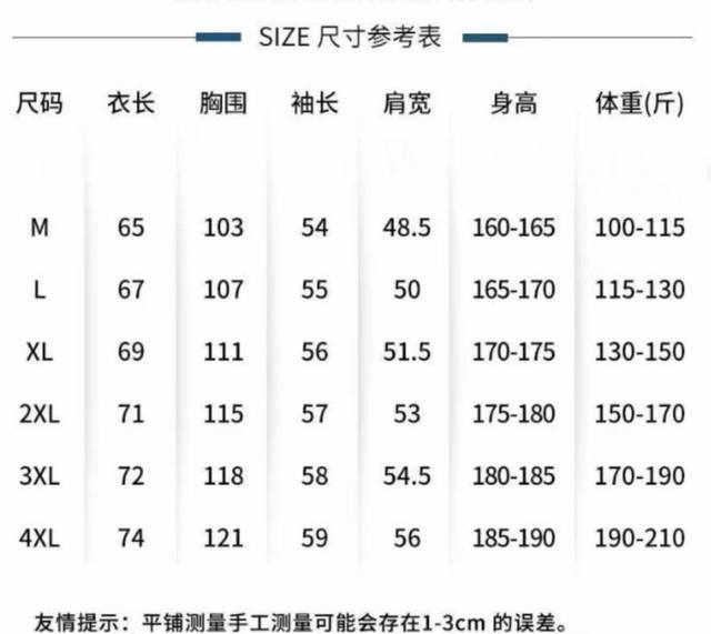 Size: M-4Xl See Figure 10