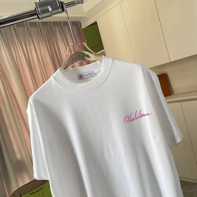 Lulu*Lulu Lemon 2025 summer new personalized letter logo printing custom fabric 300G short-sleeved T-shirt unisex