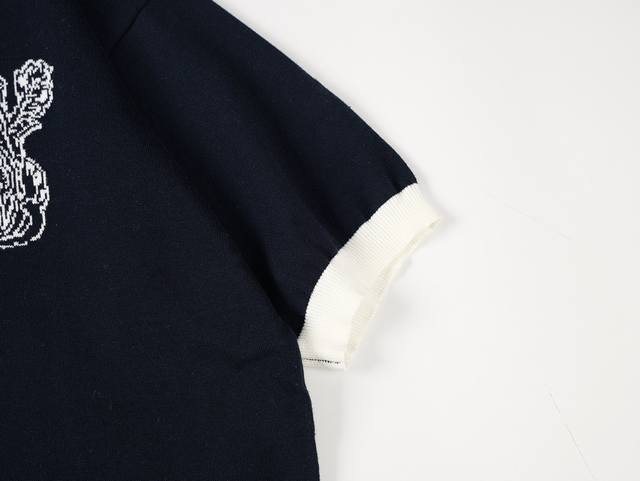 The dangling jacquard knit short sleeves are a unique knit garment that combines dangling and jacquard techniques to create unique and creative textures and patterns. The pattern is reproduced in proportion to the original spacing, resulting in a clear and delicate texture. The dangling technique used in dangling jacquard knit short sleeves involves leaving unwoven yarn in specific areas during the knitting process, resulting in a fluffy and soft surface.
