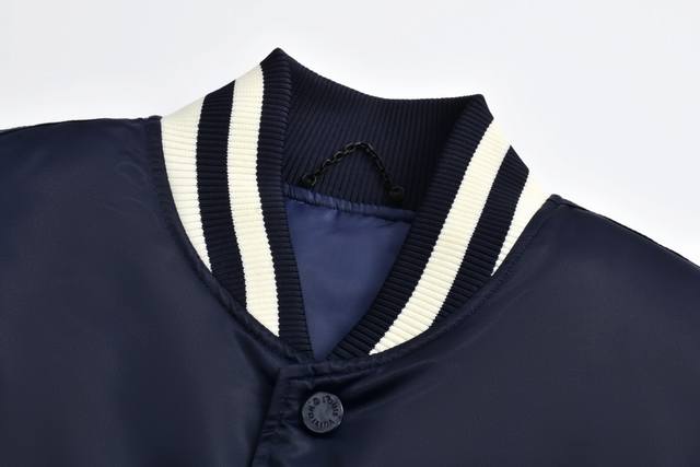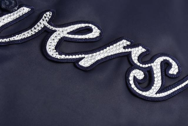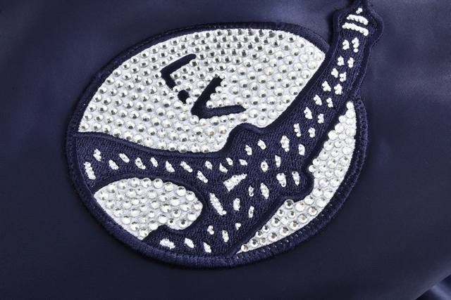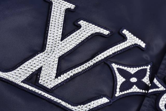 LV 24Fw Rhinestone Embroidered Padded Baseball Uniform Navy Blue Ddd The original design was purchased for 30,000 and developed using nylon semi-dull twill fabric as the main material and rayon twill satin as the lining. It features a 2200# washed cotton embroidery machine, embroidered vertical striped cotton lining, and a 1200# cotton interlayer on the placket. The patches are embroidered using a Japanese-imported Tajima embroidery machine with a white acetate twill satin base. The high gloss of the satin serves as the base for the hot-fix rhinestones, enhancing the light diffusion. A total of three floral patterns form the complete patch design. The rhinestone positions are all replicated from the original design. A single-size, single-number rhinestone template is created by hand, using two specifications: 4-line and 2-line imitation Austrian rhinestones. The hot-fix rhinestone design is created by hand and applied with a film. The patches are then placed by hand, with all four corners aligned with the embroidered black thread inside. A constant-temperature, constant-time automated hot-pressing process ensures water resistance and durability. The finished patch features a hand-cranked embroidered patch on the front panel, and the left and right panels are joined using a replicated floral design. It comes with 1.8cm high-gloss four-button snap fasteners. Complete with all three accessories, this puffer jacket features an Os silhouette cut to accommodate any body type, distinguishing it from other color-correct versions on the market. Sizes: 46-48-50