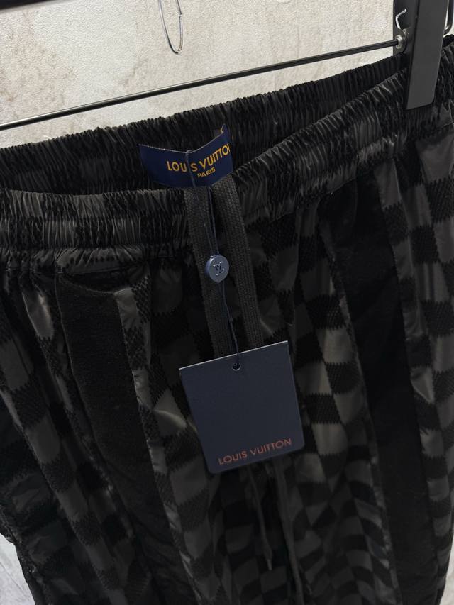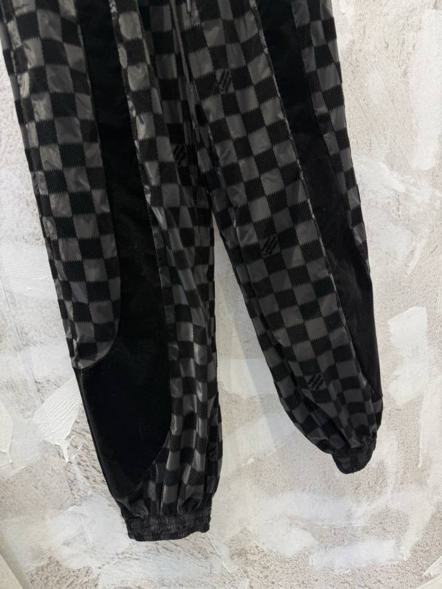 LV Correct Version Checkerboard Flocked Casual Trousers (Ddd) Fabric: Velvet Process: Flocking Featuring a matte Damier pattern incorporating the Marque L.Vuitton D