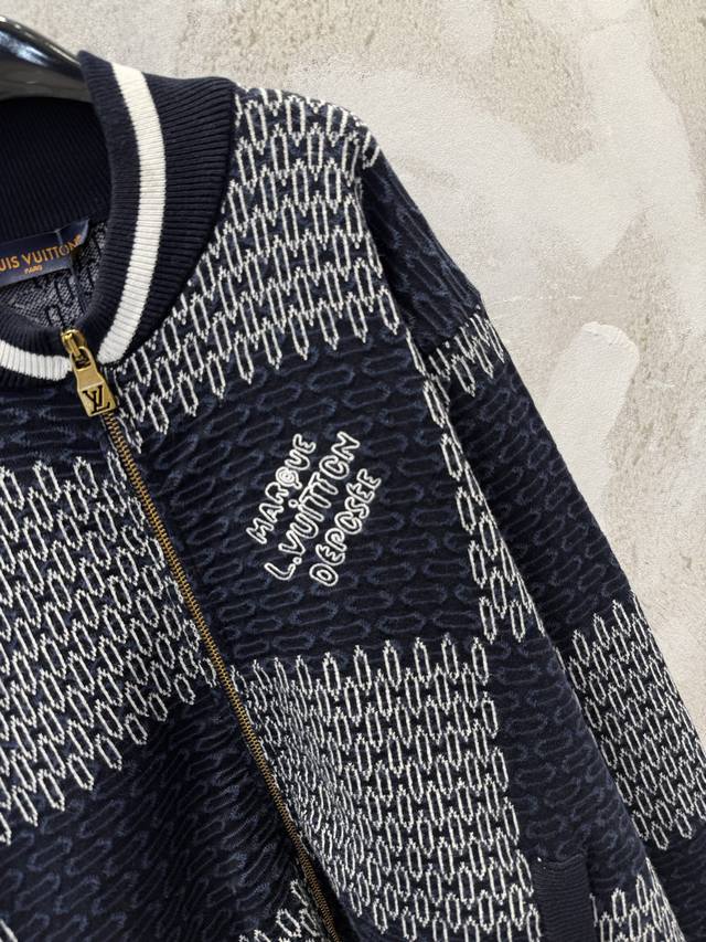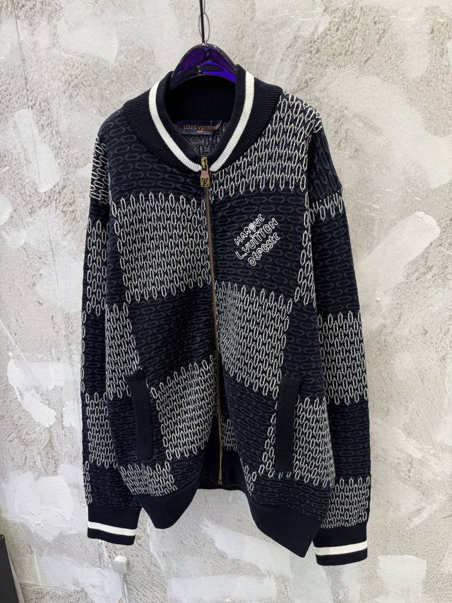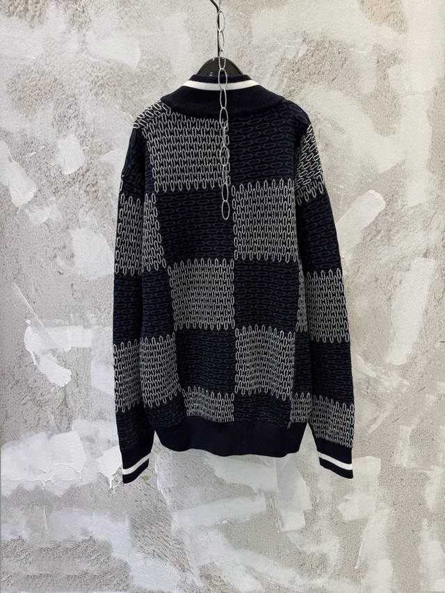 LV Damier Checkered Knit Baseball Cardigan - Classic Damier Pattern + Soft Knit Fabric, Super Comfortable for Autumn and Winter Wear. Xs SML DDD