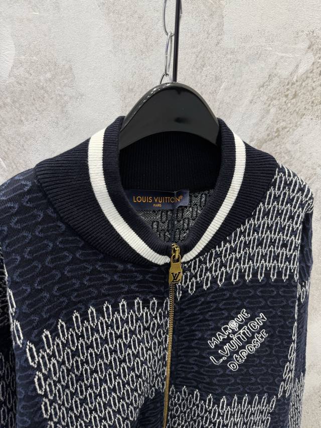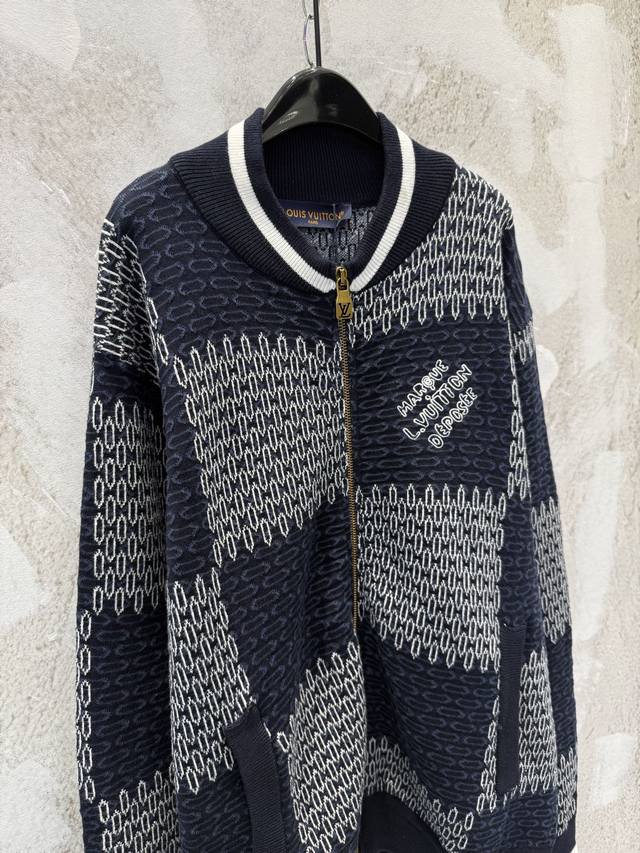 LV Damier Checkered Knit Baseball Cardigan - Classic Damier Pattern + Soft Knit