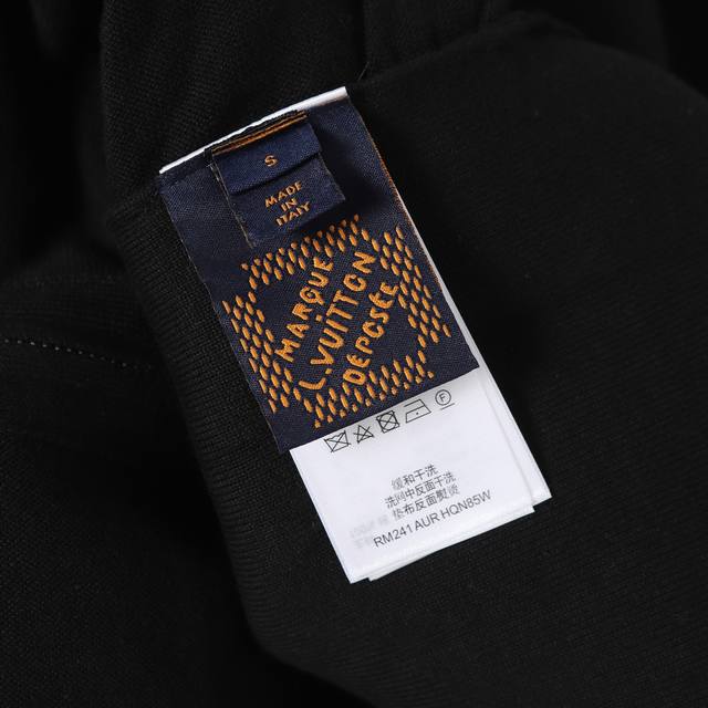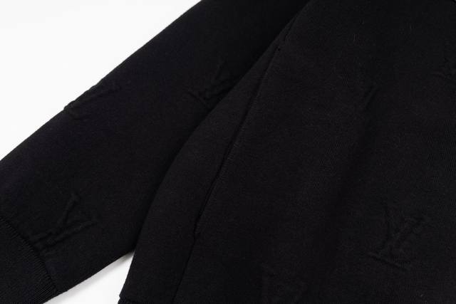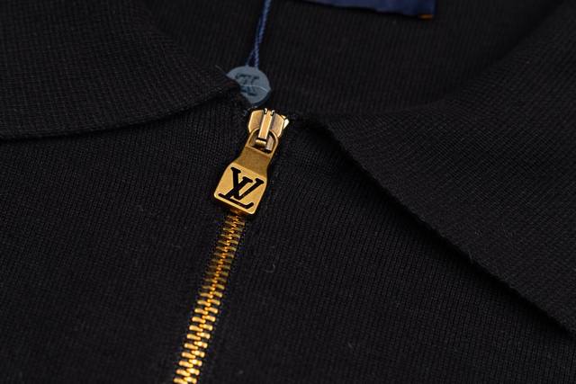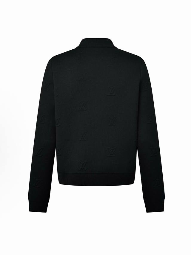 LV Embossed Lapel Knit Zipper Jacket, Black (Ddd). Original version purchased for 24,248. The fabric is made of yarn consisting of two 260% combed cotton yarns, five polyester yarns, and one high-elastic spandex yarn. It is knitted on a 14-needle German-imported Stoll machine, with each piece taking 390 minutes to knit. Due to the special nature of this weave, the machine's stability is extremely important; many machines cannot handle it, resulting in long knitting times and significant material waste. The seams are sewn with 20-needle stitches. The overall stitching is straight and delicate, the fabric is comfortable and soft, and the color is consistent with other items, allowing for stylish styling and suitable for various occasions. Custom accessories are included, and all three labels are complete. Unisex. Size: S-XL.