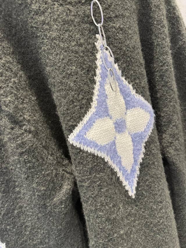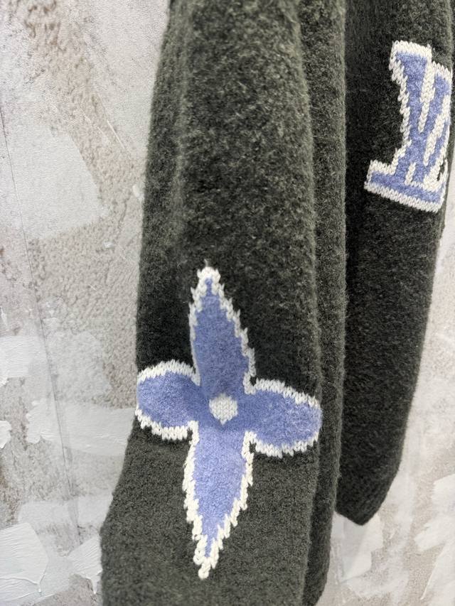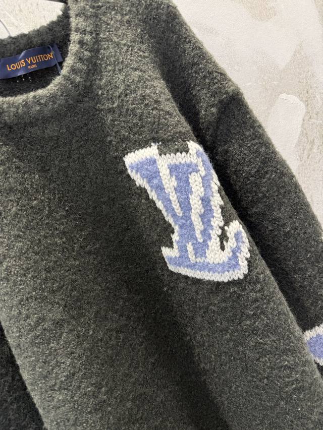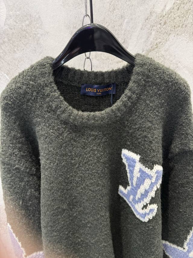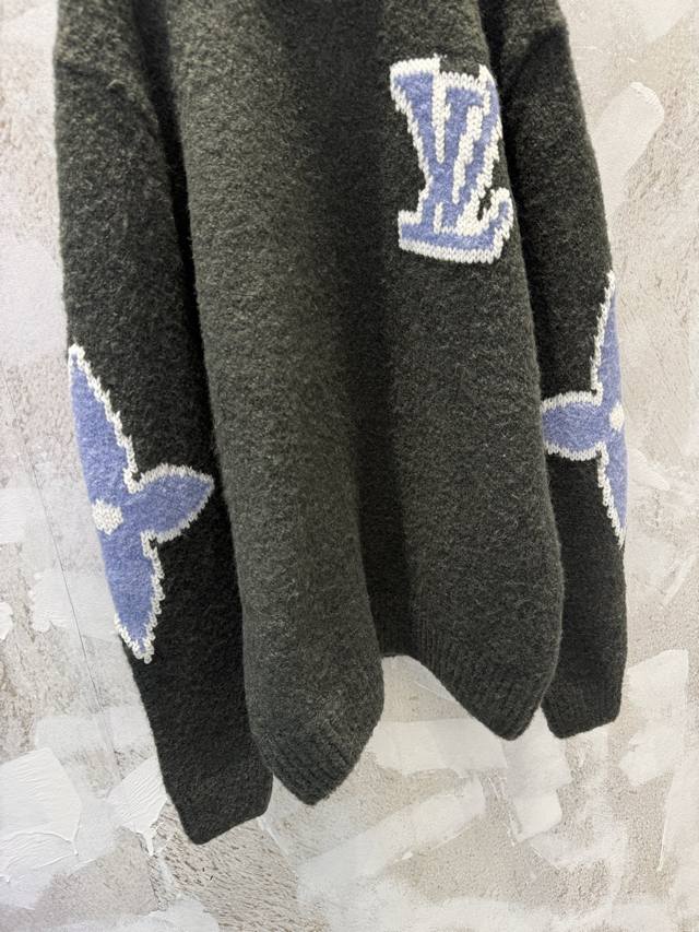 LV High-Version 25Ss Ski Logo Intarsia Sweater (Ddd). Original version purchased for 12,800 RMB, developed from this limited edition Ski series sweater. Made with 82% sheep's wool blend and 18% nylon cotton yarn. Knitted on an imported jacquard machine using 3S chunky knit cotton wool. The wool has natural crimp and elasticity, providing excellent warmth. The jacquard weave highlights the contrasting four-leaf clover and logo intarsia pattern, enhancing the sweater's three-dimensionality and layering. All tags and accessories are included, distinguishing it from other versions on the market. First release online. Sizes: Xs, S, M, L, DDD