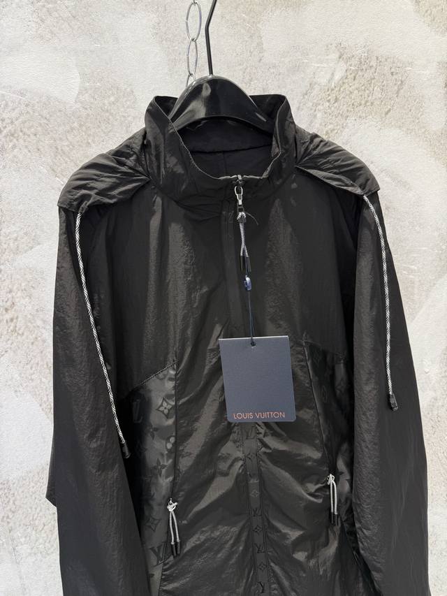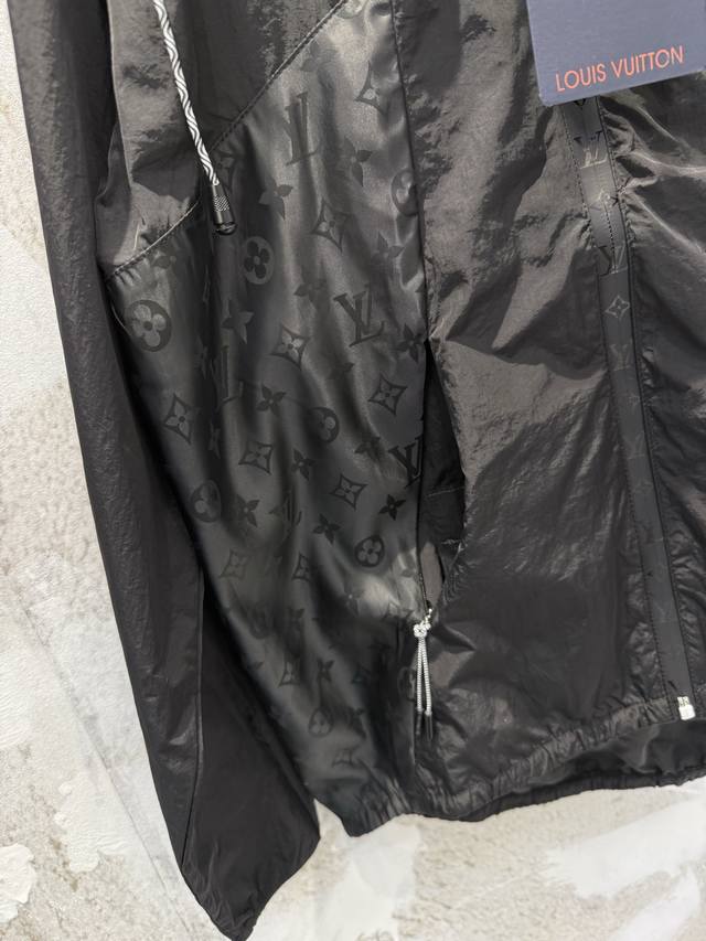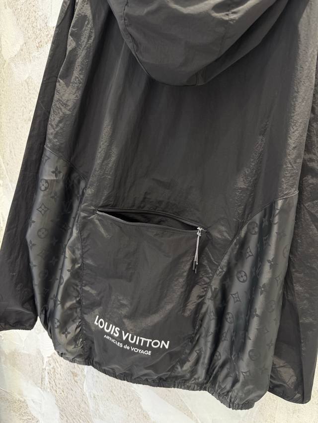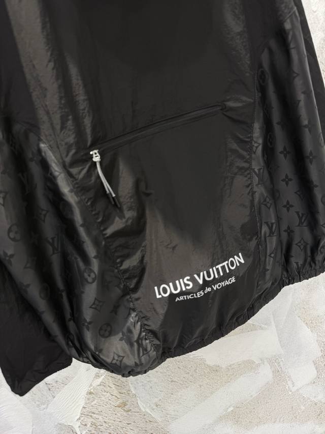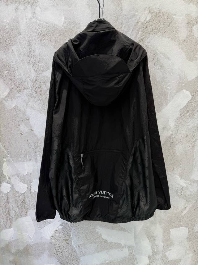 LV monogrammed hooded jacket with subtle pattern, sun protection and windproof, unisex, stylish and practical. Made of exclusive imported 100% technical polyester, it has a good structure! Soft and skin-friendly to the touch, comfortable and stylish! The overall quality is substantial, with a retro style! A superb fit, the latest summer item. Look for the exclusive high-quality version. Sizes: Xs, S, M, L.