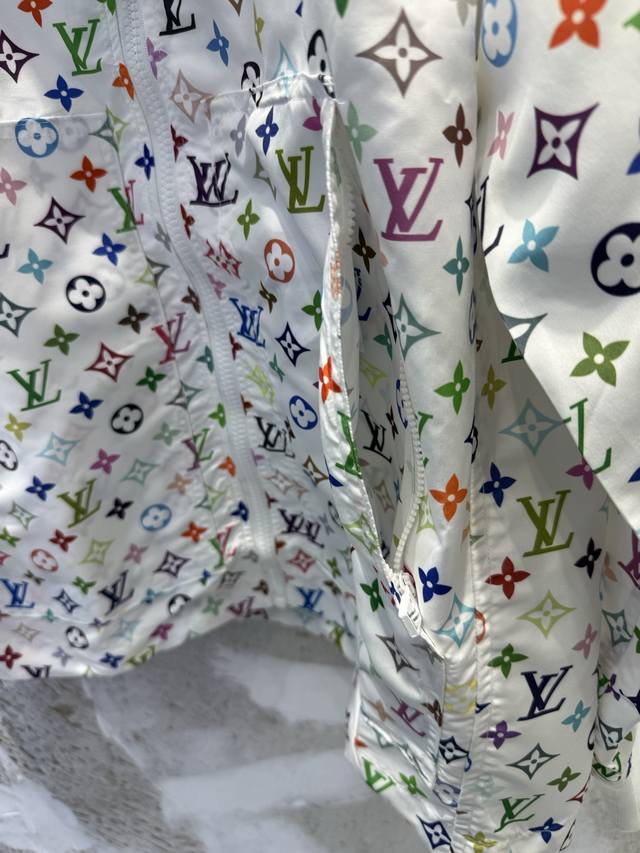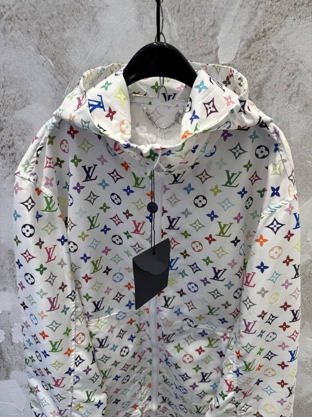 LV x Takashi Murakami Mongram Colorful All-over Print Hooded Sun Protection and Windproof Jacket, Men's and Women's Sizes: Xs, S, M, L, D