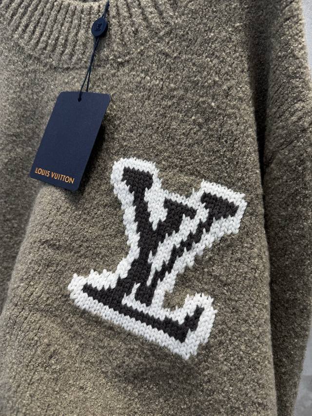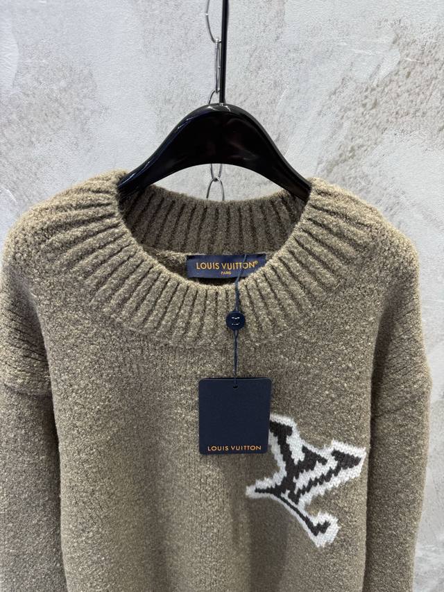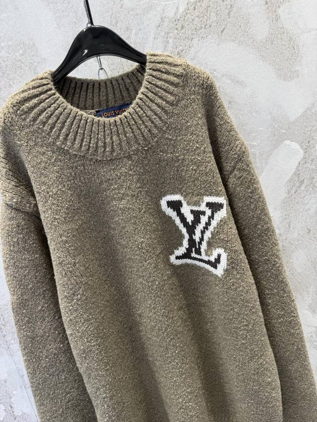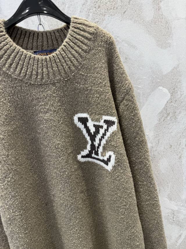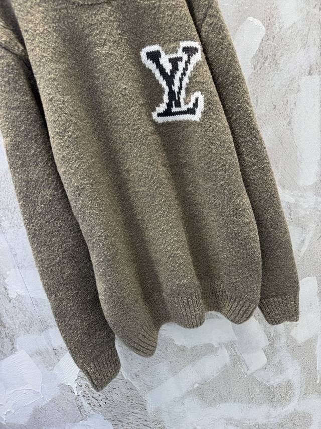 LV25Fw Khaki Mirror Sweater, Soft and Thick Wool and Yak Wool Blend, Super Warm for Autumn and Winter. Sizes: Xs, S, M, L. Available in 4 Colors: White, Black, Navy Blue, Khaki.