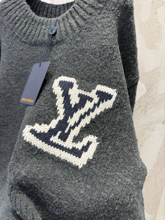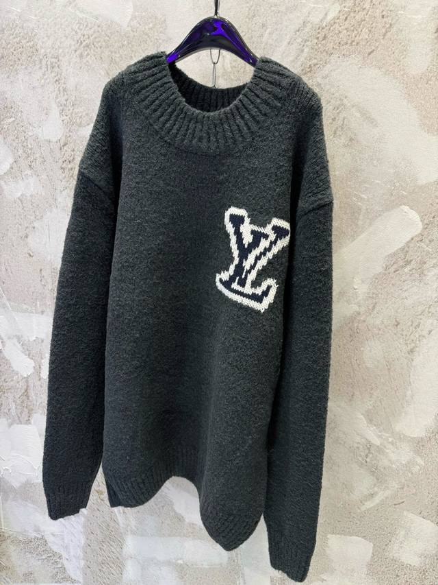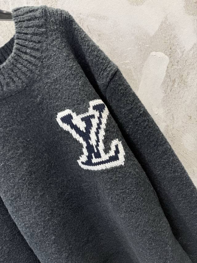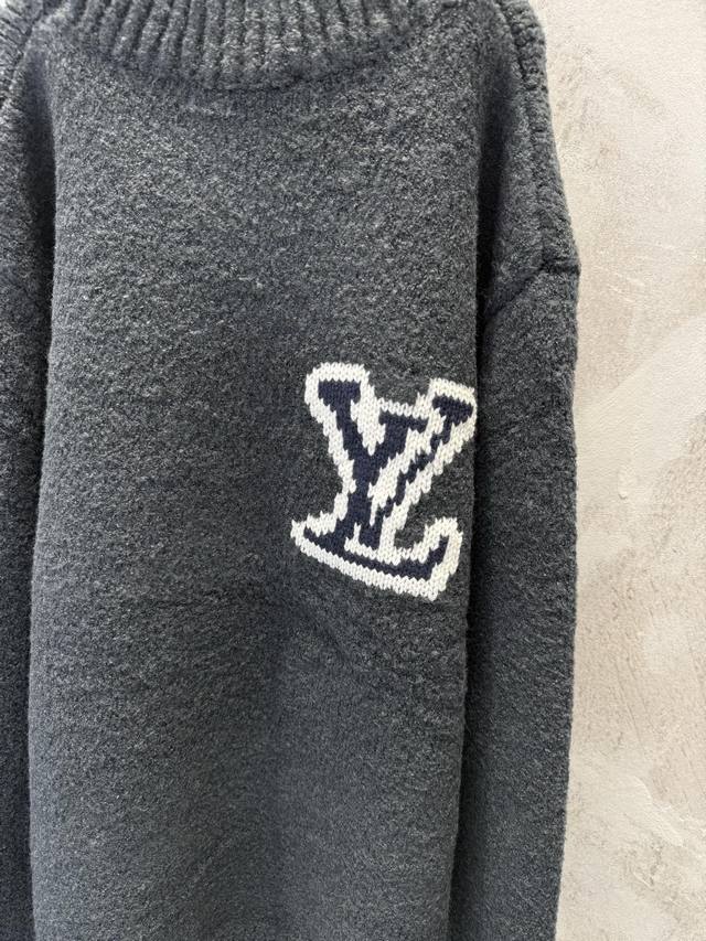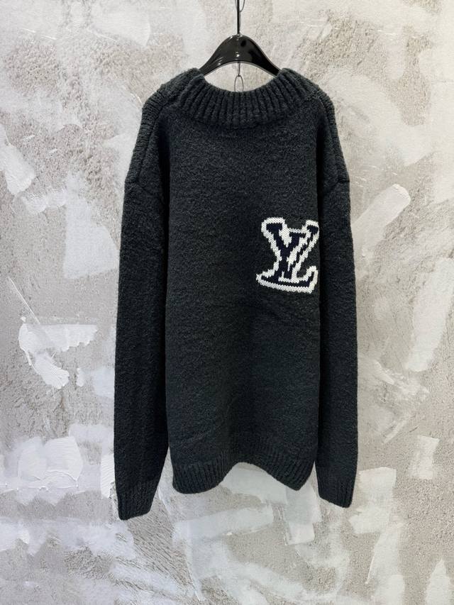 LV25Fw Navy Blue Mirror Sweater, Soft and Thick Wool and Yak Wool Blend, Super Warm for Autumn and Winter. Sizes: Xs, S, M, L. Available in 4 Colors: White, Black, Navy Blue, Khaki.