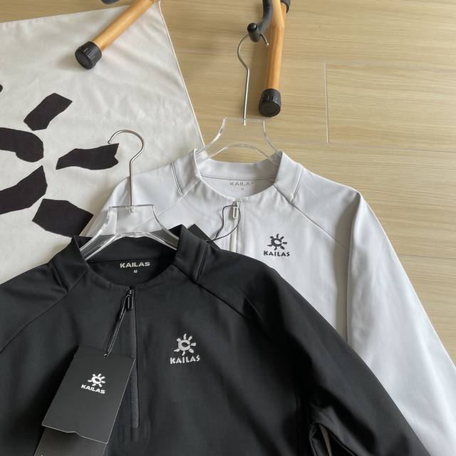 High-quality brushed Kailas in two colors with a half-zip and laminated design! Long-sleeved T-shirt with a small silicone logo