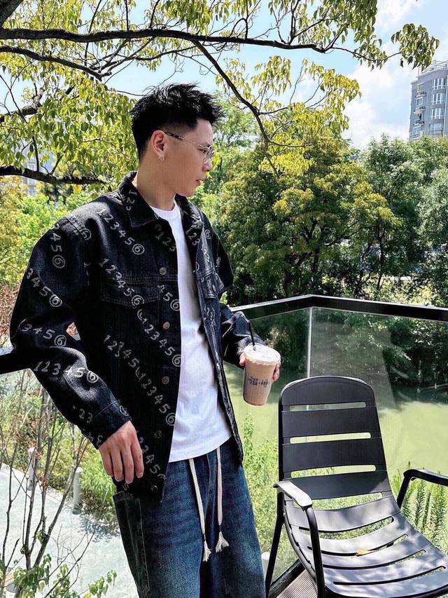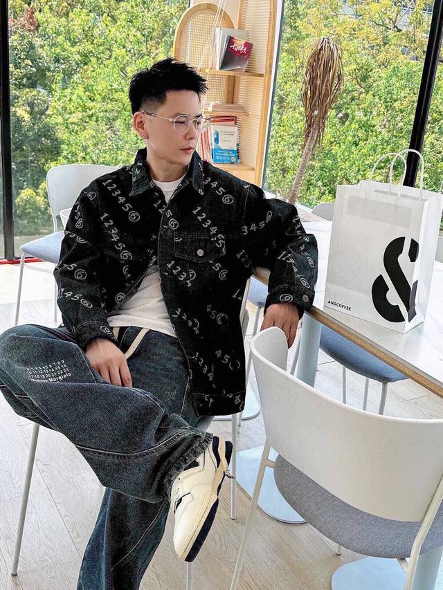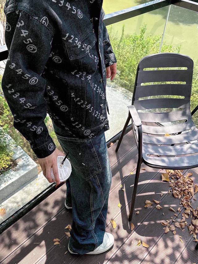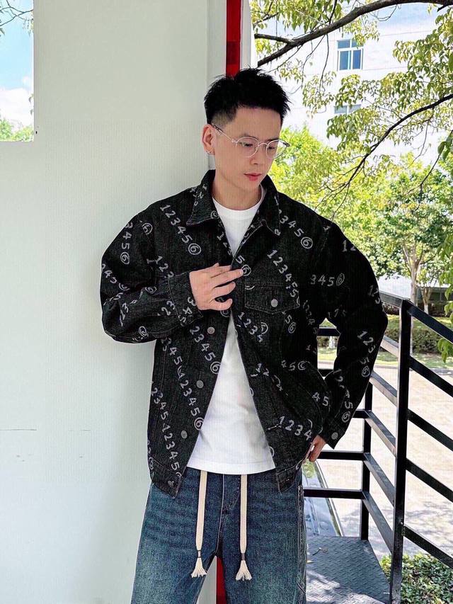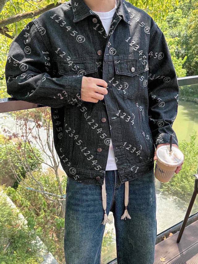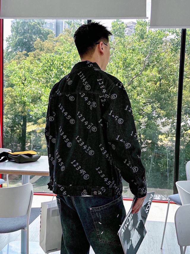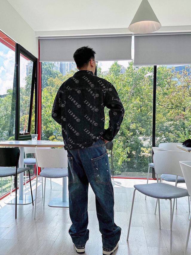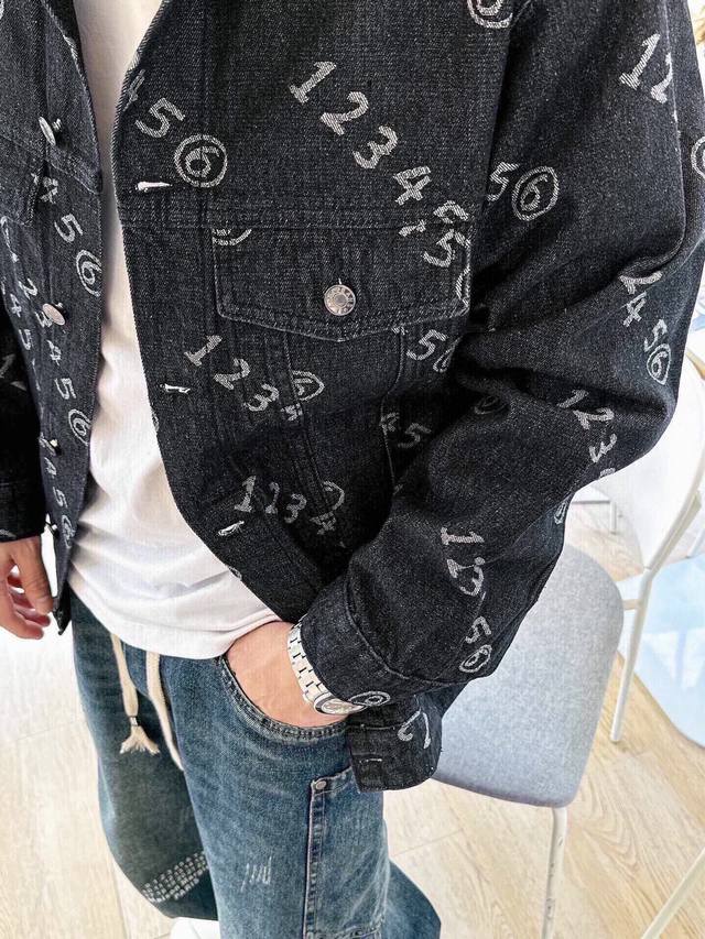 Maison Margiela 123Ss 2 Washed Denim Jacket - Latest Hot Item! The design is incredibly flattering and exudes elegance! The washed and distressed finish prevents fading, resulting in a naturally vintage look! Features a large logo and Arabic numerals. The relaxed fit is super stylish and versatile. The fabric is sturdy and doesn't easily deform! High-quality feel, the loose silhouette is unisex. Color: Black Sizes: M~3X Style Number: 3037