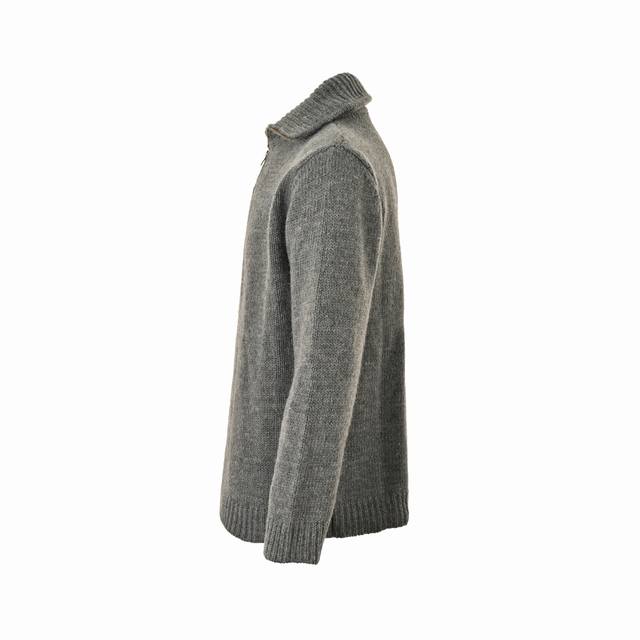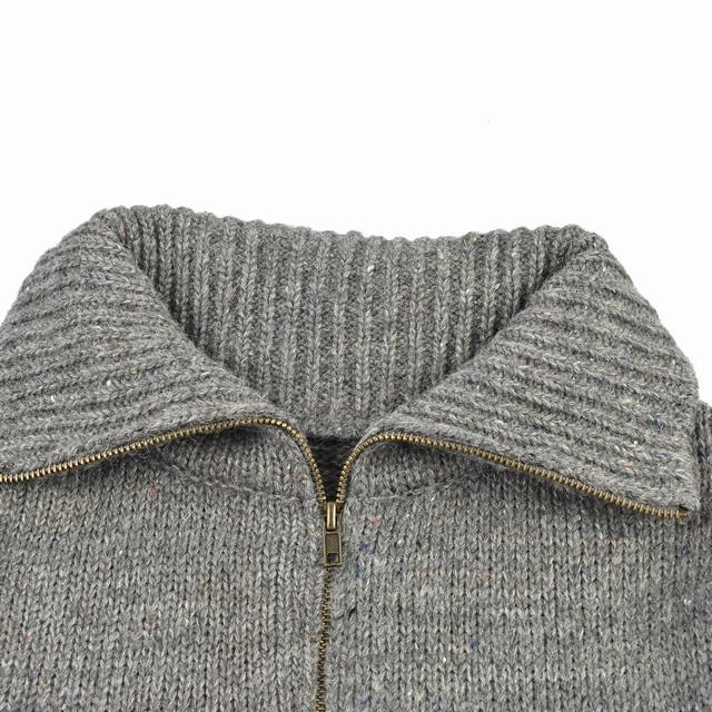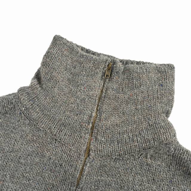 This sweater is built on a custom-spun, custom-developed wool blend yarn. Its complexity lies in the fact that it is not achieved through post-dyeing, but rather by blending and twisting wools of varying shades