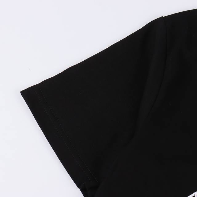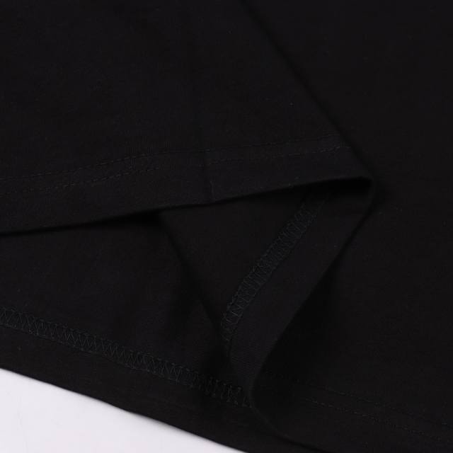 The fabric is custom-woven and dyed G32 double yarn fabric, with a wide neckline thread of 300G1*1 cotton thread, which will not deform after long-term wear. The fabric is woven into grey cloth after the yarn is purchased, and then washed and pre-shrunk, and then taken to the dyeing factory for dyeing, and then dried and washed to set. Because the fabric has been washed twice, it has the fourth-level color fastness of the foreign trade standard and is not easy to fade. The print is screen glue printing, and the front panel is spliced with circle cutting technology, which is very distinctive. The main label is purely hand-sewn, and all three labels are customized. It is versatile for both men and women