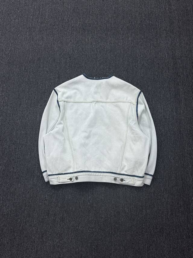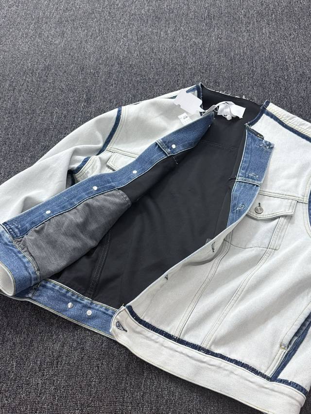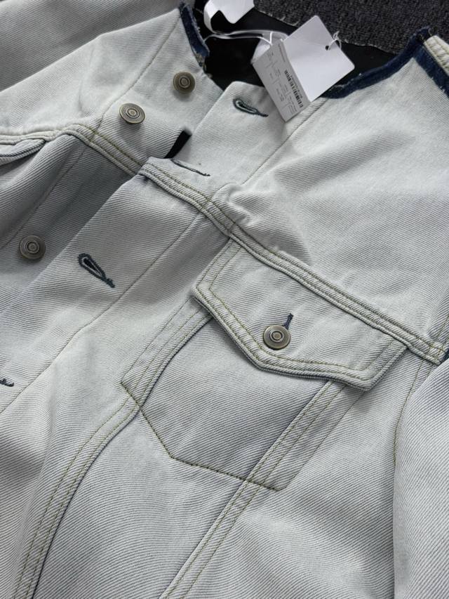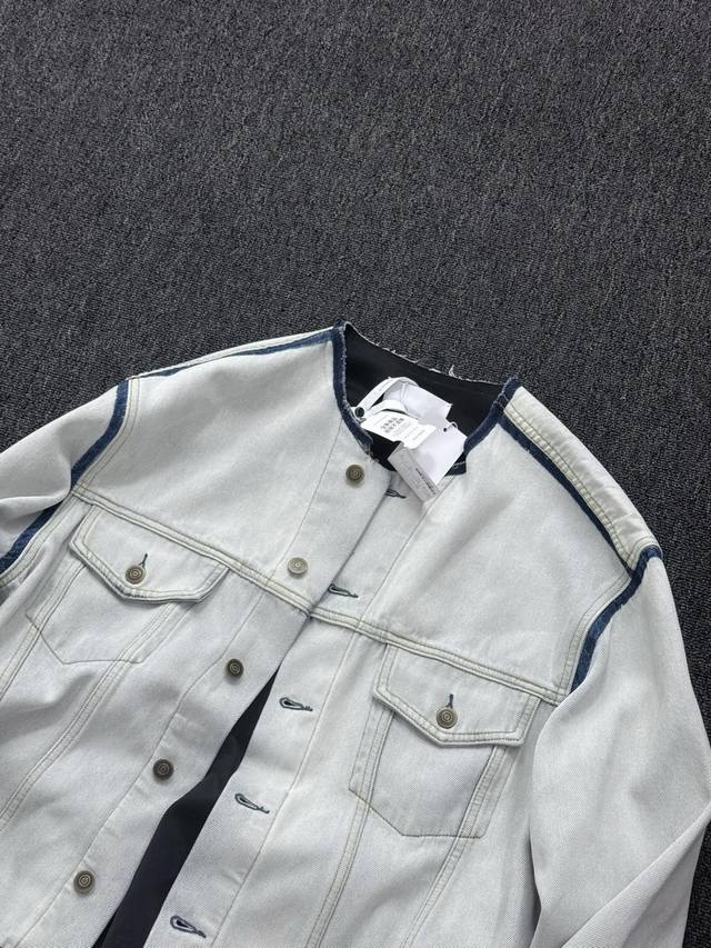 Maison Margiela Style Collarless Denim Jacket, Unisex. This collarless denim jacket, reminiscent of a 21,000 RMB original, features a complex washing process and imported fabric. Stylish and comfortable for early autumn, this unisex jacket suits various body types! Key Fabric: Made with imported Turkish 13.5oz pure cotton denim, it's soft and comfortable against the skin. The unique glacier blue color is achieved through two heavy washes and six marquise treatments. The complex process and high material consumption ensure a quality comparable to the 21,000 RMB original. Superior Texture: Buttons are supplied by the Japanese company Canami, ensuring top-notch detail quality. The lining is composite-treated for an ultra-skin-friendly feel, enhancing the wearing experience while maintaining both aesthetics and comfort. Design Highlights: Classic collarless design, simple and stylish, suitable for all styles, with the signature understated elegance of Margiela. Unisex design, perfect for wearing alone or layering under light clothing in early autumn, highly practical. Size Reference: [You can add specific size range and weight for compatibility; otherwise, please leave it blank.] Color: Glacier Blue Sizes: 36, 38, 40 This denim jacket wins with its imported fabric and complex washing process. The glacier blue color is eye-catching and unique, easily elevating your look for early autumn. Suitable for both men and women!