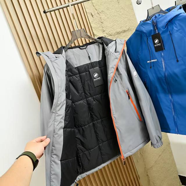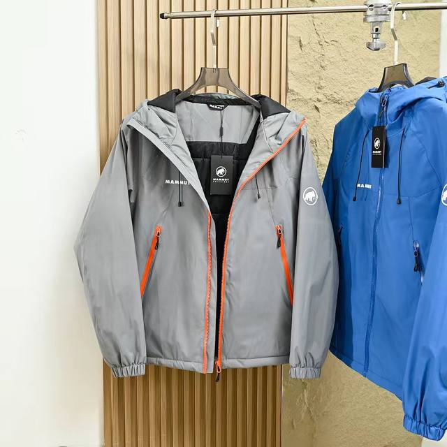 Mammut color-blocked zipper functional retro lightweight warm cotton coat, outdoor multi-functional windproof and water-repellent lightweight P cotton. Unisex Mammut style, same style available in stores. 2998. Functional fabric, waterproof, breathable, wear-resistant, and warm. Straight hem design with adjustable hem drawstring to prevent cold air from entering. Three-dimensional tailoring for a more comfortable fit. Hooded design with 5cm reinforced structure for a strong and upright feel. Tightens for warmth, helmet compatible. Elastic cuffs with half-horsefoot Velcro for windproof. High-loft cotton lining, clean and high-quality P cotton, machine washable without clumping, anti-static lining, no difference from down jacket. Outer fabric windproof, inner lining provides excellent warmth, not bulky, high cost performance. Simple style, versatile. Colors: Black, Blue, Dark Gray. Sizes: M-3XL. M: Length 67cm, Chest 113cm, Sleeve Length (including shoulder) 84cm, Recommended weight: 110-125 lbs (