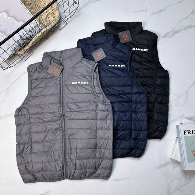 down vest features a layered design at the collar and shoulders to maintain warmth even when wet. It includes an outer zippered pocket and a small zippered pocket at the back of the waist. The classic design and hip-length construction help keep you warm. Made with functional fabric, this down vest helps you stay warm in colder temperatures. The lightweight duck down filling, combined with a stretch fabric panel, allows for freedom of movement. The sleeves are fitted, and the stand-up collar helps lock in warmth. Colors: Black, Gray, Navy. Sizes: S (Chest 102cm, Length 66cm, Shoulder 40cm, Weight 95kg), M (Chest 108cm, Length 68cm, Shoulder 42cm, Weight -125kg), L (Chest 112cm, Length 70cm, Shoulder 43cm, Weight 125kg), XL (Chest 71cm, Length 46cm, Weight -155kg), 2XL (Chest 132cm, Length 72cm, Shoulder 48cm, Weight 155kg), 3XL (Chest 138cm, Length 73cm, Shoulder 49cm, Weight -).