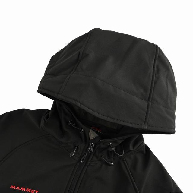 Mamut Softshell Fleece Jacket. A versatile softshell outdoor staple, this jacket is unisex and meets the functional needs of various scenarios. A must-have for softshell enthusiasts! A classic design, this jacket is professionally designed for year-round hiking, trekking, and mountaineering. It features a windproof and durable 3-layer Gore-Tex fabric for year-round wear, comfortable four-way stretch fabric for softness and flexibility, an open 3D back lining for better moisture wicking, a two-point adjustable hood for a snug fit and freedom of movement, a two-way zipper on the front for adjustable closure, a concealed zippered pocket on the chest, slanted pockets on both sides of the waist, and optimized underarm zippers for enhanced ventilation and breathability, keeping you dry during high-intensity activities. The hem is adjustable with a drawstring.