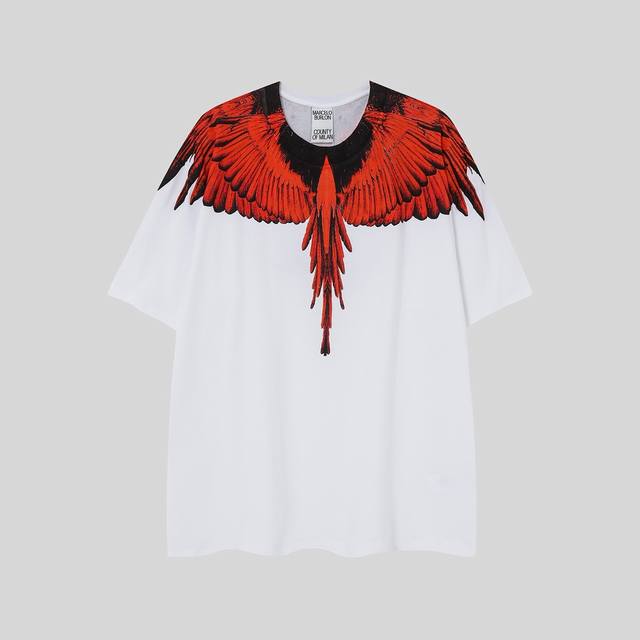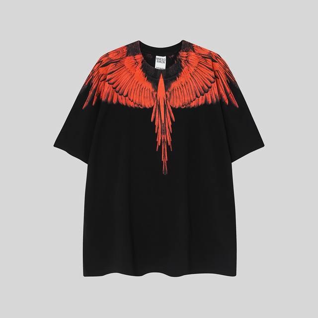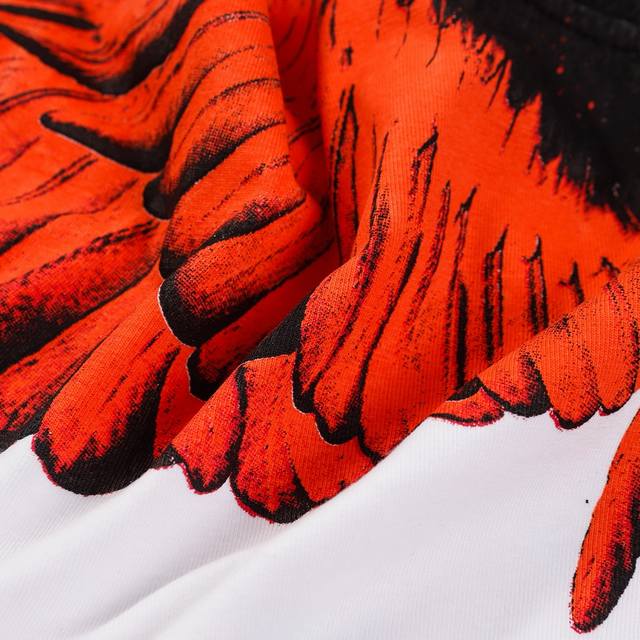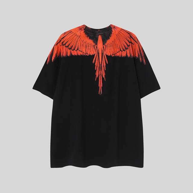Marcelo Bron Mb Wings top version new orange feather print cotton T-shirt Size: SML Xl Xxl
