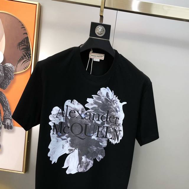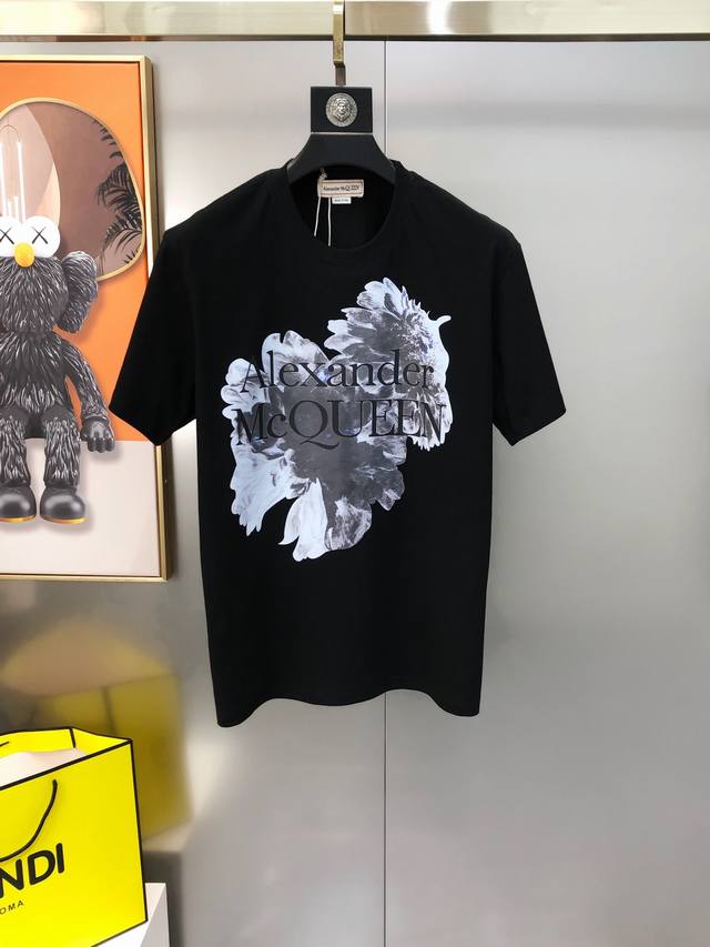 McQ*Een 2025 New Original Men's Crew Neck Short Sleeve T-Shirt, Sold in Department Stores, High-End Quality, High-Version Os Fit, Wide Fit, Popular Style, Printed Letter Logo Pattern Design, Customized Imported Double-Strand 100% Pure Cotton Fabric, Soft and Delicate to the Touch, Skin-Friendly and Comfortable to Wear, Factory Direct, Exquisite Workmanship, Very Handsome and Stylish, A Must-Have Item for Men, All Tags Complete, Sizes: S-5XL, Largest Size Fits Approximately 220 lbs, Please Provide Height and Weight When Ordering, Black, White,