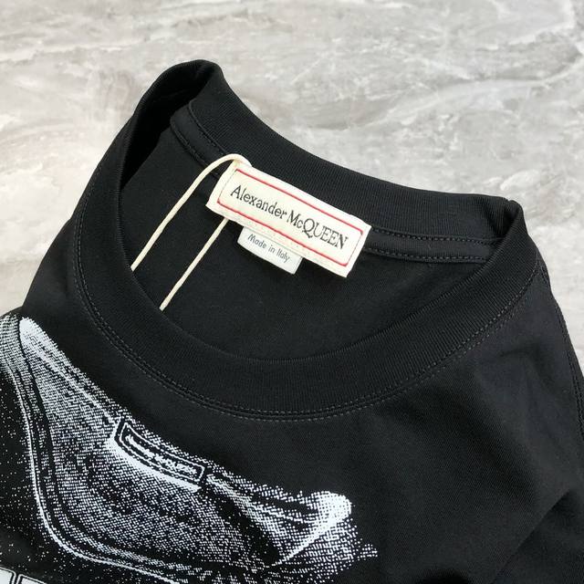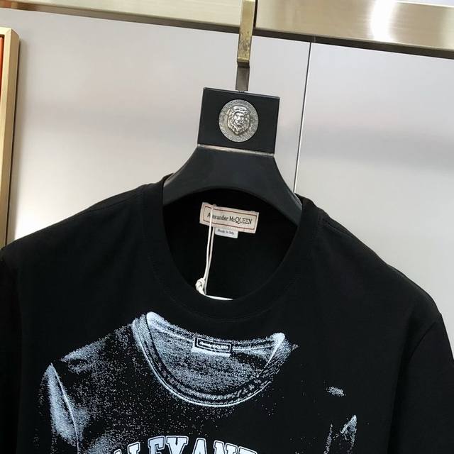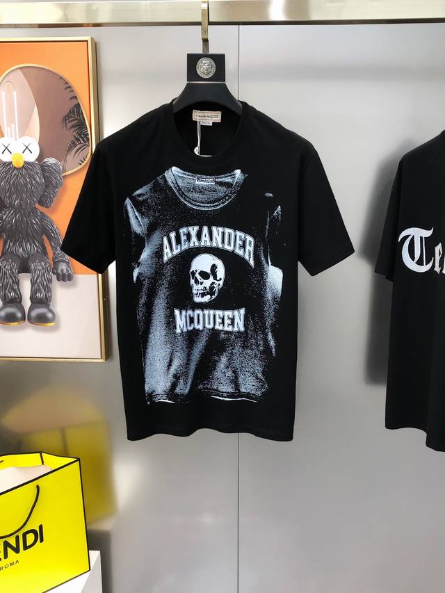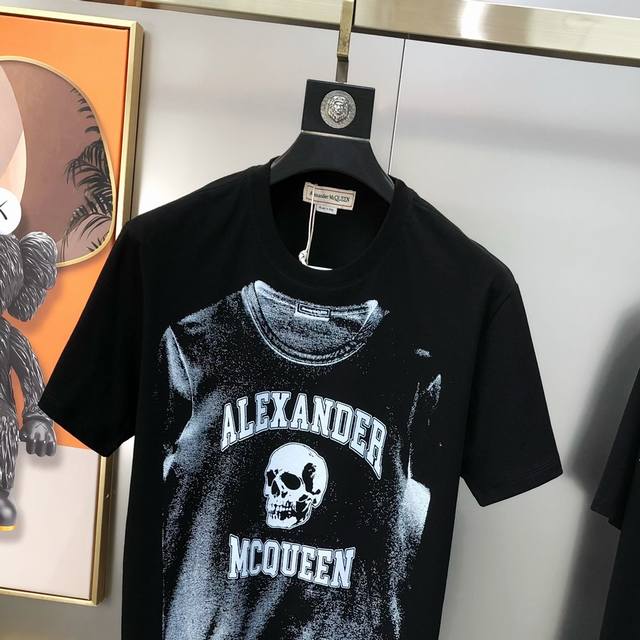 Mcq*Een McQueen 2025 spring and summer new original men's round neck short-sleeved T-shirt counter simultaneous sale high-end quality high version Os version wide version popular printing offset printing letter Logo pattern design custom imported double-strand 100% cotton fabric soft and delicate to the touch skin-friendly and comfortable to wear OEM factory P fine workmanship very handsome and stylish men's must-have item three complete sizes: S-5Xl maximum size can wear about 220 pounds please report height and weight when placing an order black white