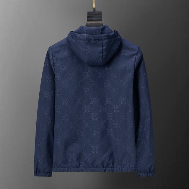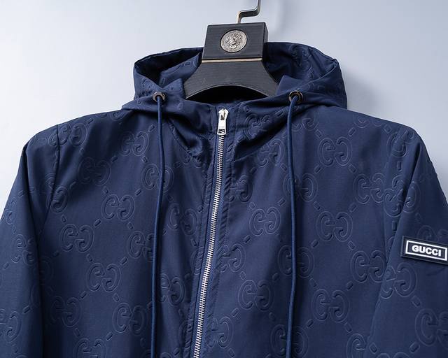 Mi 2640 Autumn/Winter New Hooded Trench Coat, Official Website Synchronized Gg Embossed Design, Stylish and Elegant, Meticulous Workmanship, Neat Stitching, Great Fit, Original Custom-Made Hardware Zipper, In Stock M-3XL 56039# Royal Blue