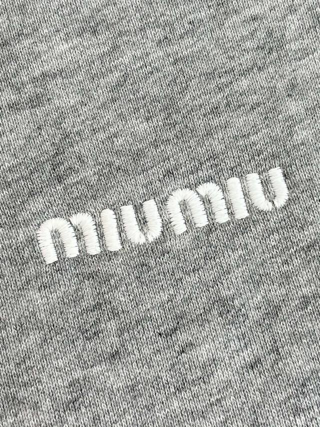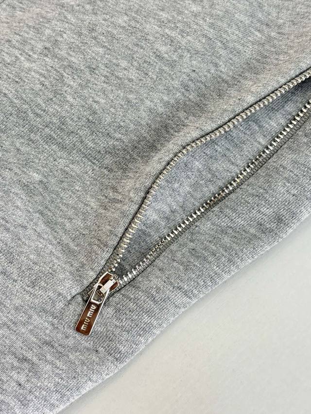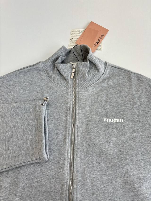 Miiumiu* Miiumiu 25 New Small Logo Embroidered Zipper Jacket DDD Originally purchased for 17,000, the fabric is a custom-woven and dyed 480g terry wool fish scale fabric with gray and white yarns interwoven in a mixed color scheme. Solid color versions on the market are incorrect. Custom embroidered letters, purely hand-distressed, first sewn into a mold, then hand-cut out the shape, then each letter is pasted out perfectly by hand, and finally sewn along the edges. The front pockets form kangaroo pockets, the engraved zipper is a Swiss Riri zipper, double-ended zipper closure, elastic cuffs, Os silhouette DDD Size: SML DDD