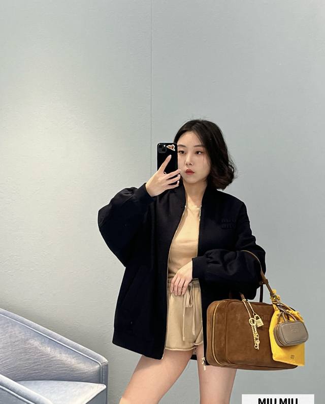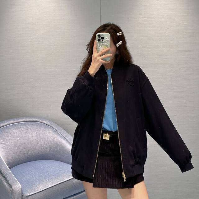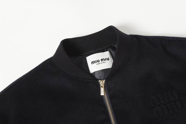 Miu Miu 24Ss Zippered Long-Sleeve Jacket, Authentic, Purchased 14877, 1200 Down Washed Cotton, Tencel Lining, Imported Embroidery, Custom 2*2 Flat Ribbed Knit, Custom 1:1 Zipper, Custom 1:1 Label, Loose Fit, Sizes 36, 38, 40, 42