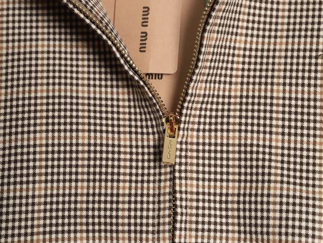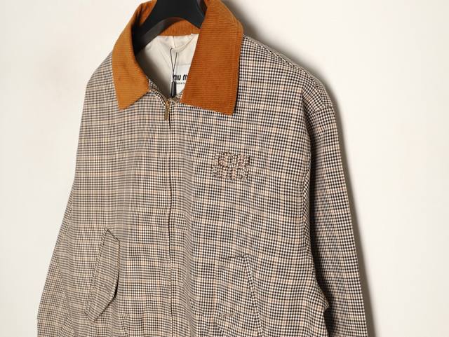 ) This jacket reinterprets the quintessential Miu style with its plaid pattern. It explores the fashionable possibilities of a contrasting corduroy collar and double-layered fabric, embodying a balance between retro and modern. The overall stitching is straight and delicate, the fabric is comfortable and soft, and the color is consistent with other pieces, allowing for easy pairing with other items to create a stylish look suitable for various occasions. Custom accessories included, all tags are present, unisex style! (
