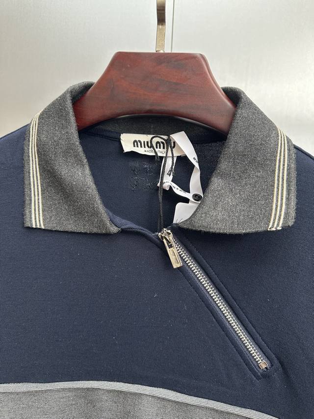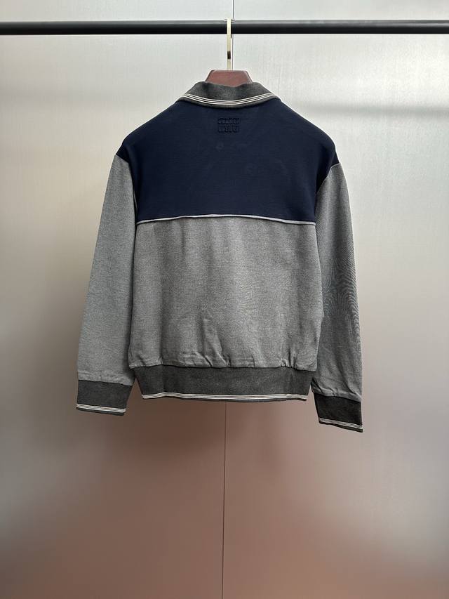 Miu Miu 25Ss Color Block Long-Sleeve Sweatshirt with Side Zipper. Authentic product purchased for 25,400 RMB. Custom-made silky viscose, nylon, and spandex sweatshirt fabric, 420g, flat knit, imported embroidery, fermented fabric wash, custom 1:1 zipper, custom 1:1 label , fit well . Sizes: 36, 38, 40, 42.