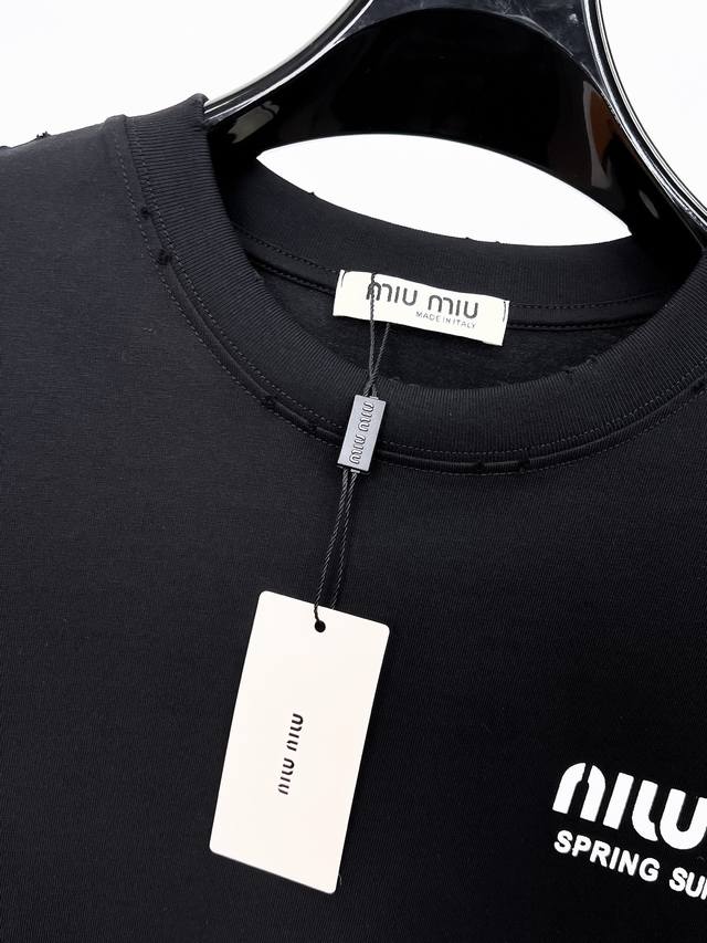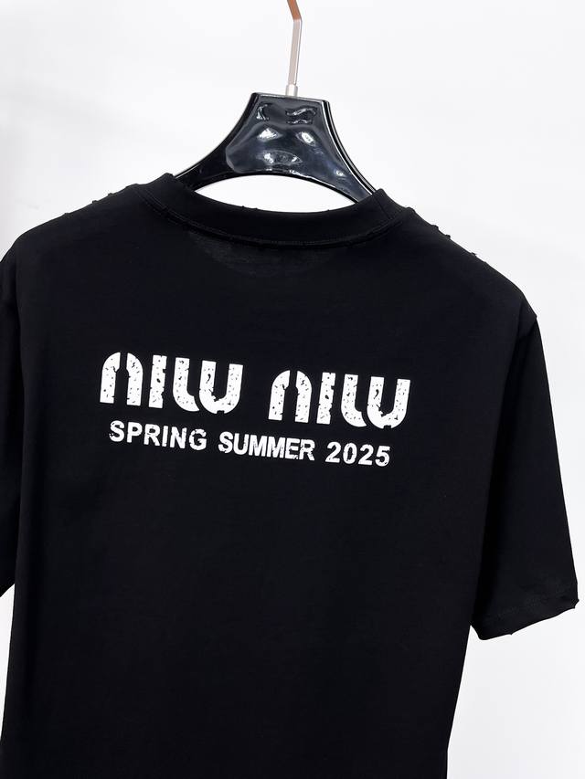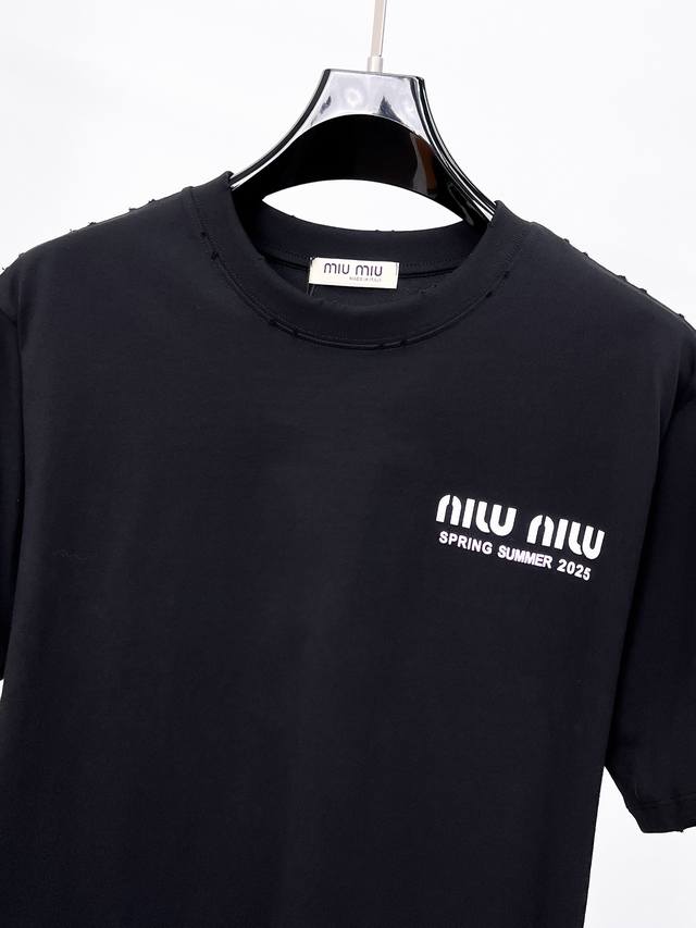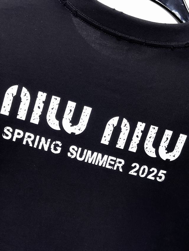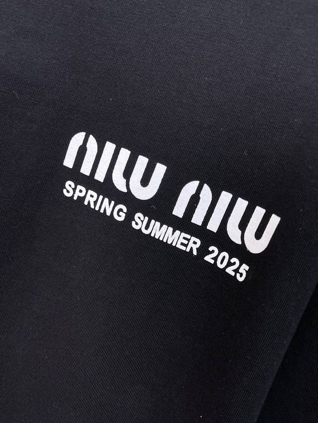 Miu Miu, all tags included. Newest 2025 Summer Short-Sleeve T-Shirt, available in department stores, original quality, fashionable imported technical fabric, comfortable and breathable, original custom hardware, stylish and fashionable, all tags included, highly recommended, very high-end, reseller quality, sizes: M-3XL DDD