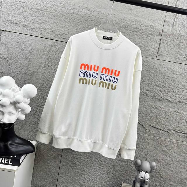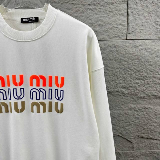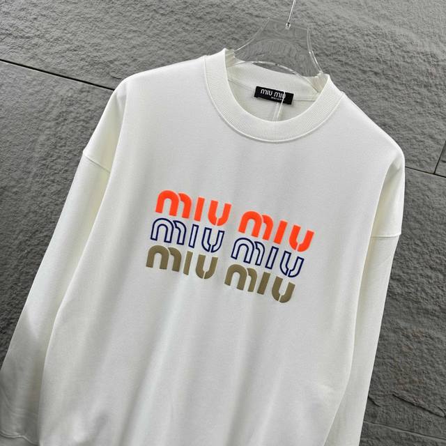 Miu Miu* Autumn/Winter New Classic Letter 3D Flocked Long-Sleeve Crew Neck Sweatshirt, Custom Terry Fabric, Unisex. Colors: Black, White. Sizes: S (90-130 lbs), M (120-150 lbs), L (140-165 lbs), XL (160-180 lbs), XXL (180-210 lbs).