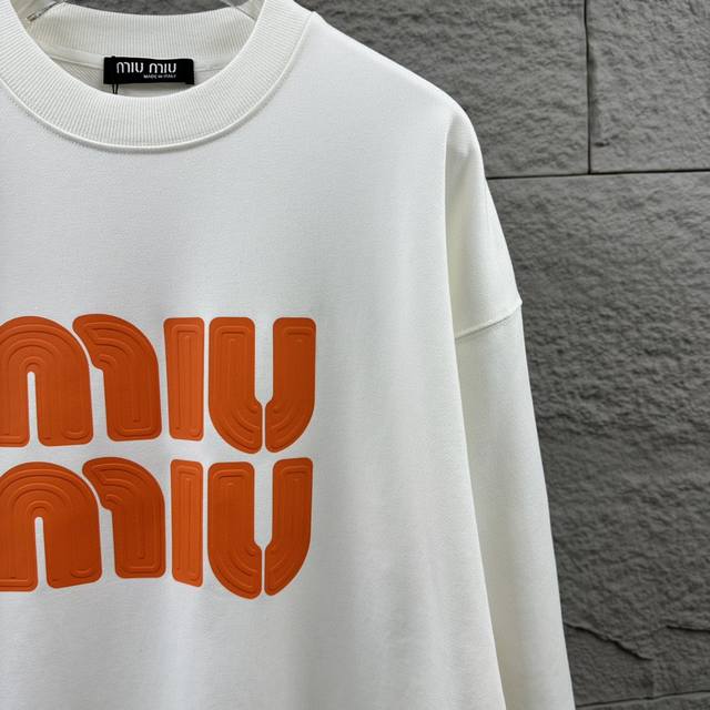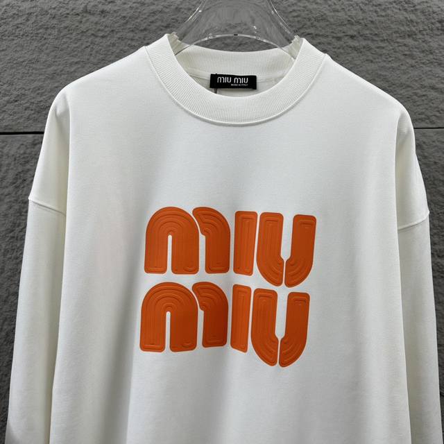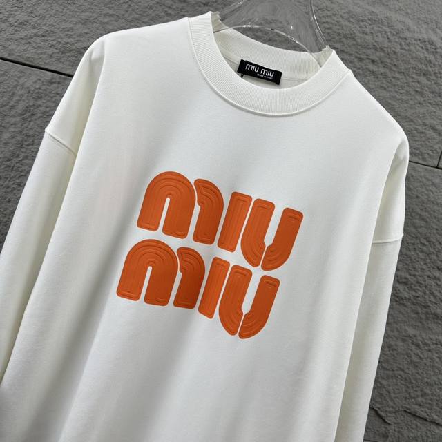 Miu Miu* Autumn/Winter New Classic Letter 3D Thick Silicone Craft Long-Sleeve Crew Neck Sweatshirt, Custom Terry Fabric, Unisex Style. Colors: Black, White. Sizes: S (90-130 lbs), M (120-150 lbs), L (140-165 lbs), XL (160-180 lbs), XXL (180-210 lbs).
